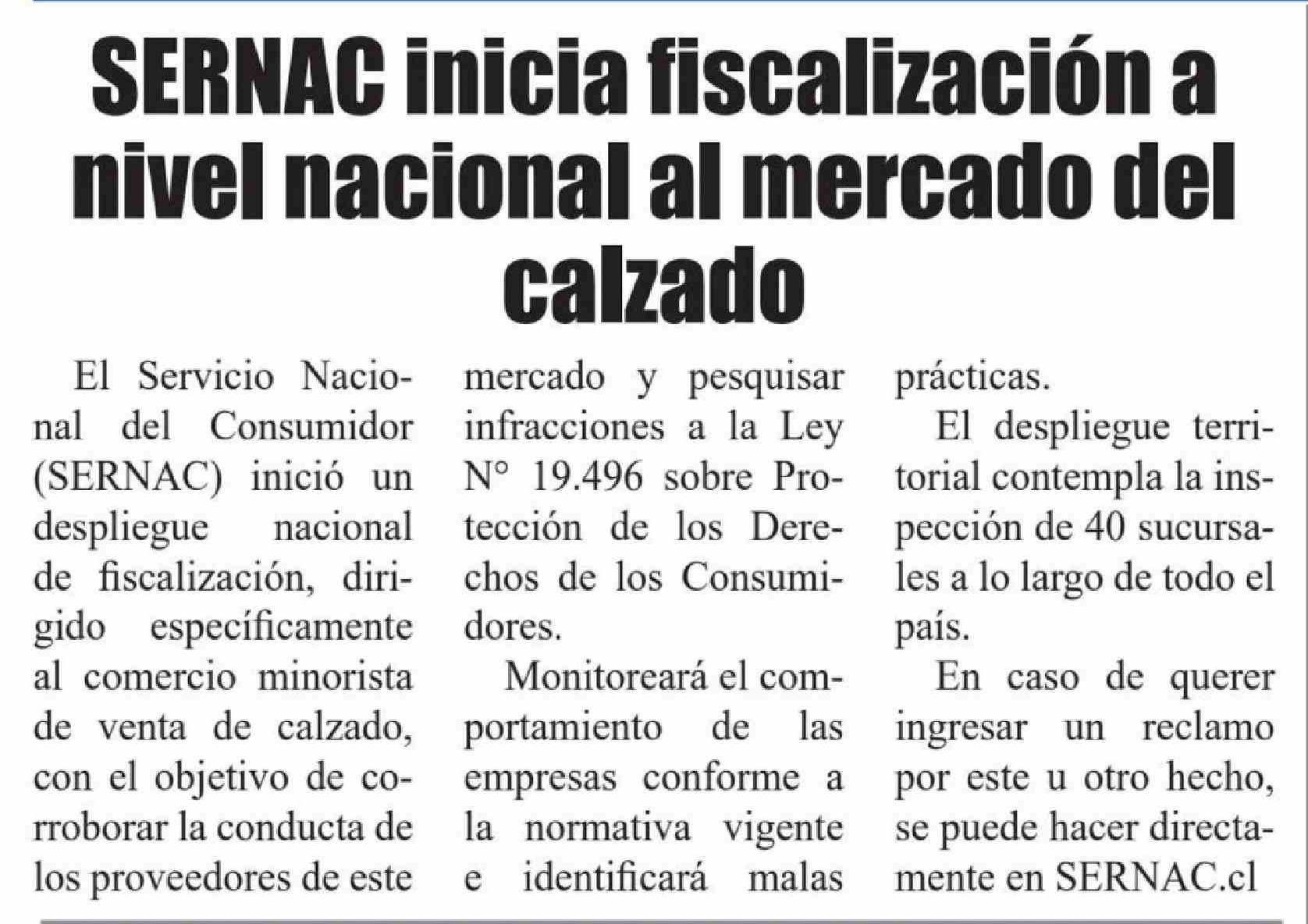 | Título: | SERNAC inicia fiscalización a nivel nacional al mercado del calzado |