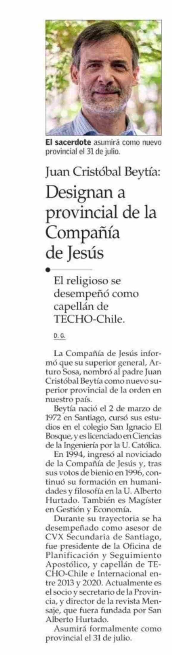 Designan a provincial de la Compañía de Jesús 09-06-2025 El Mercurio |