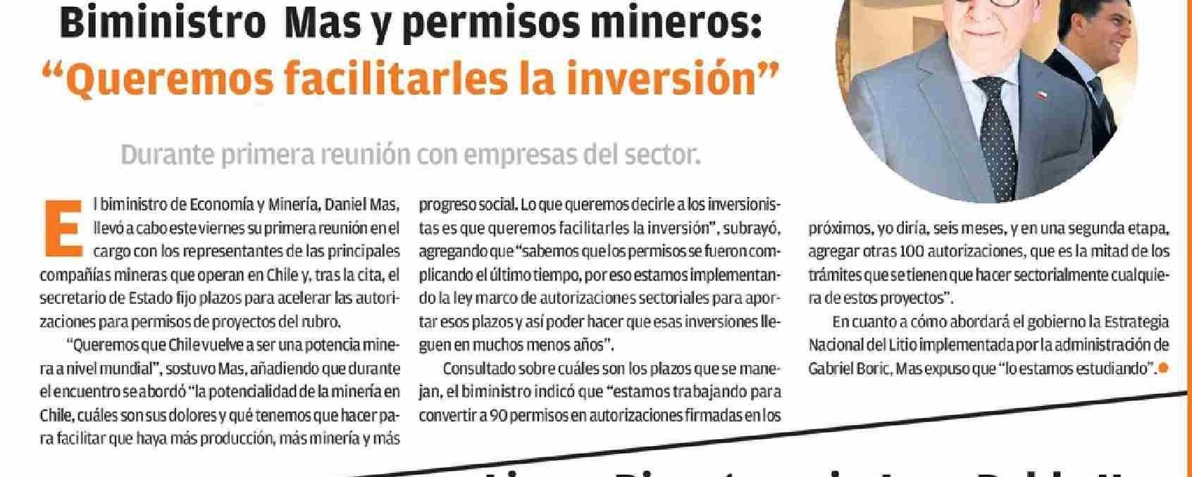 | Título: | Biministro Mas y permisos mineros: “Queremos facilitarles la inversión” |