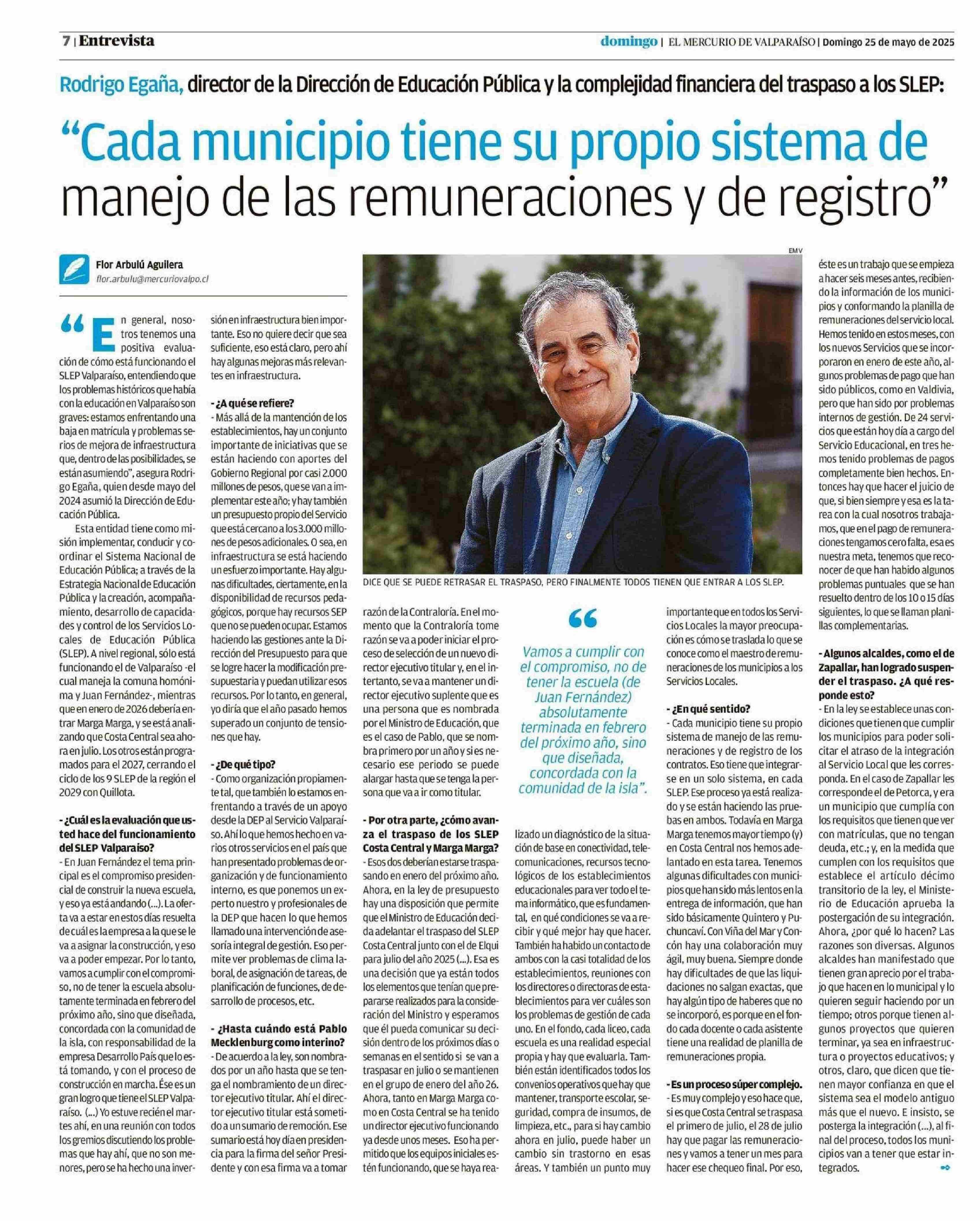 "Cada municipio tiene su propio sistema de manejo de las remuneraciones y de registro" 25-05-2025 El Mercurio de Valparaíso |