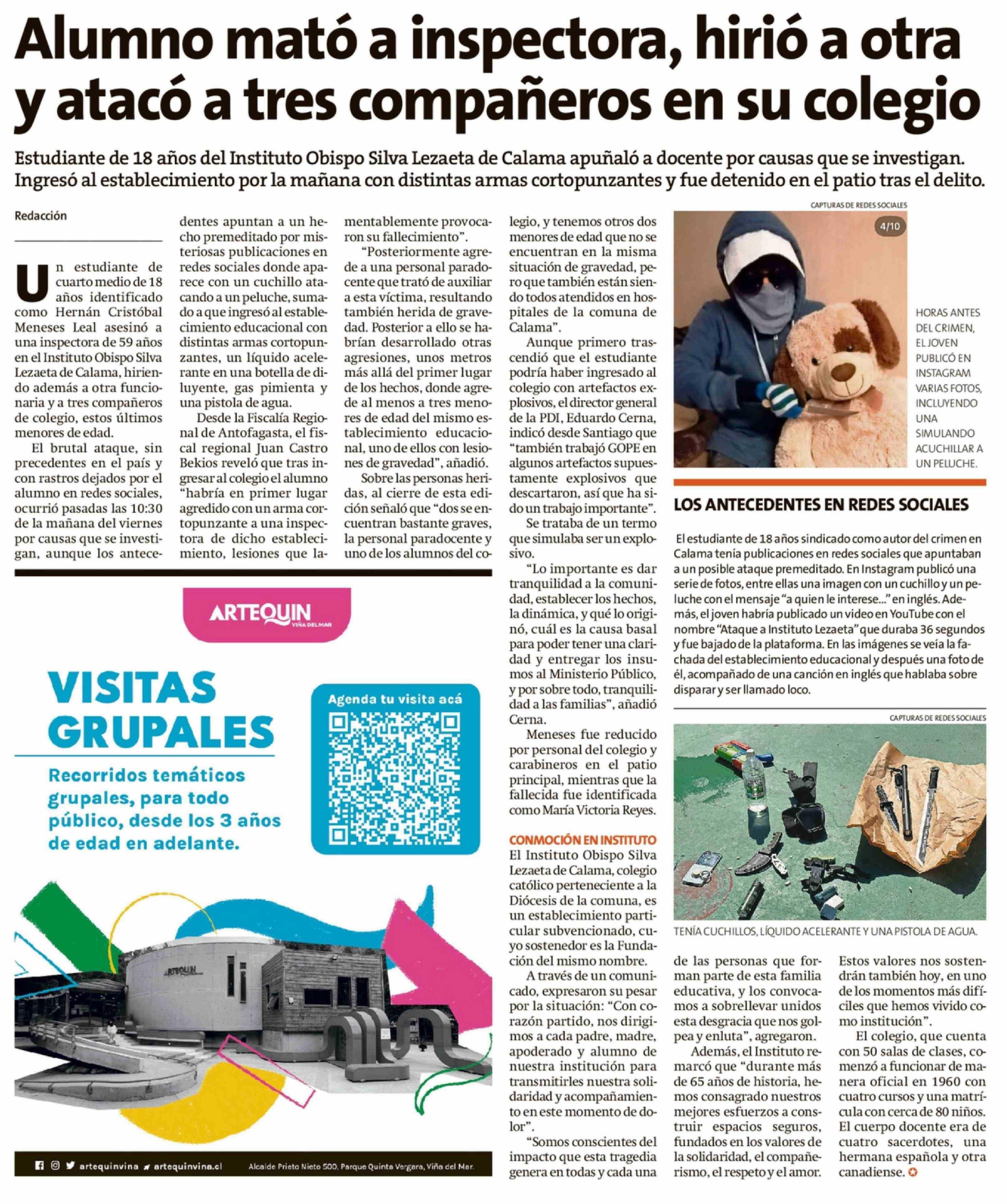 Título: Alumno mató a inspectora, hirió a otra y atacó a tres compañeros en su colegio