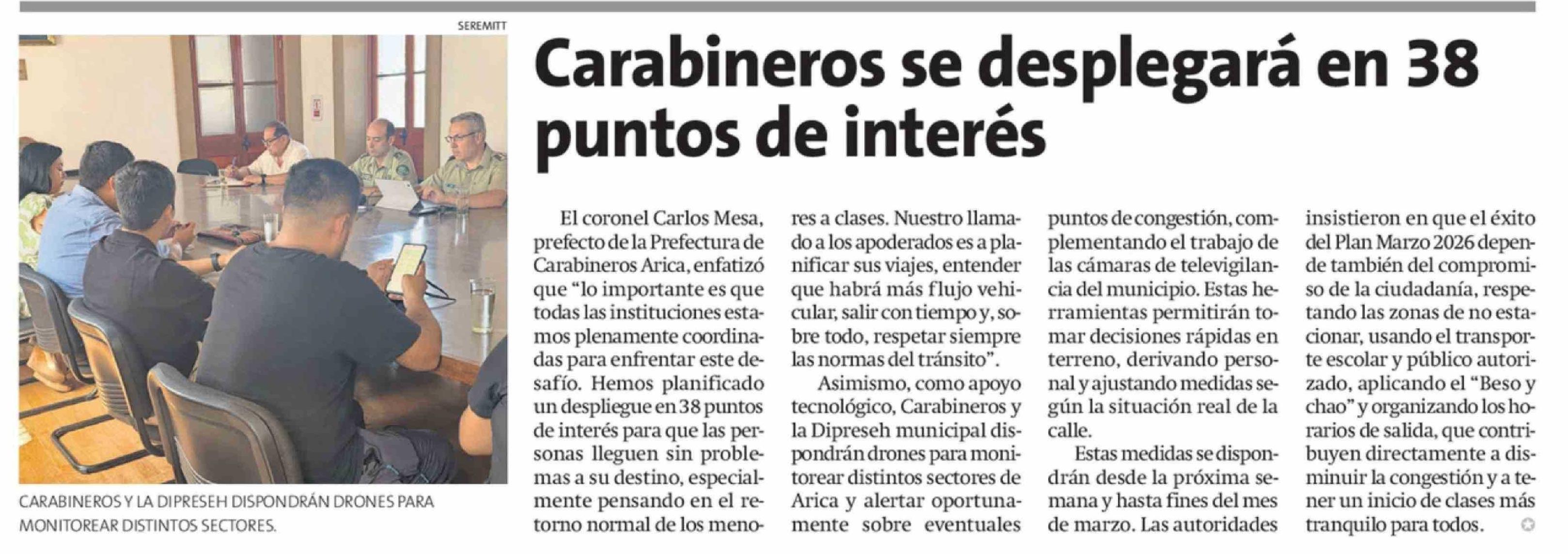 Carabineros se desplegará en 38 puntos de interés 28-02-2026 La Estrella de Arica |