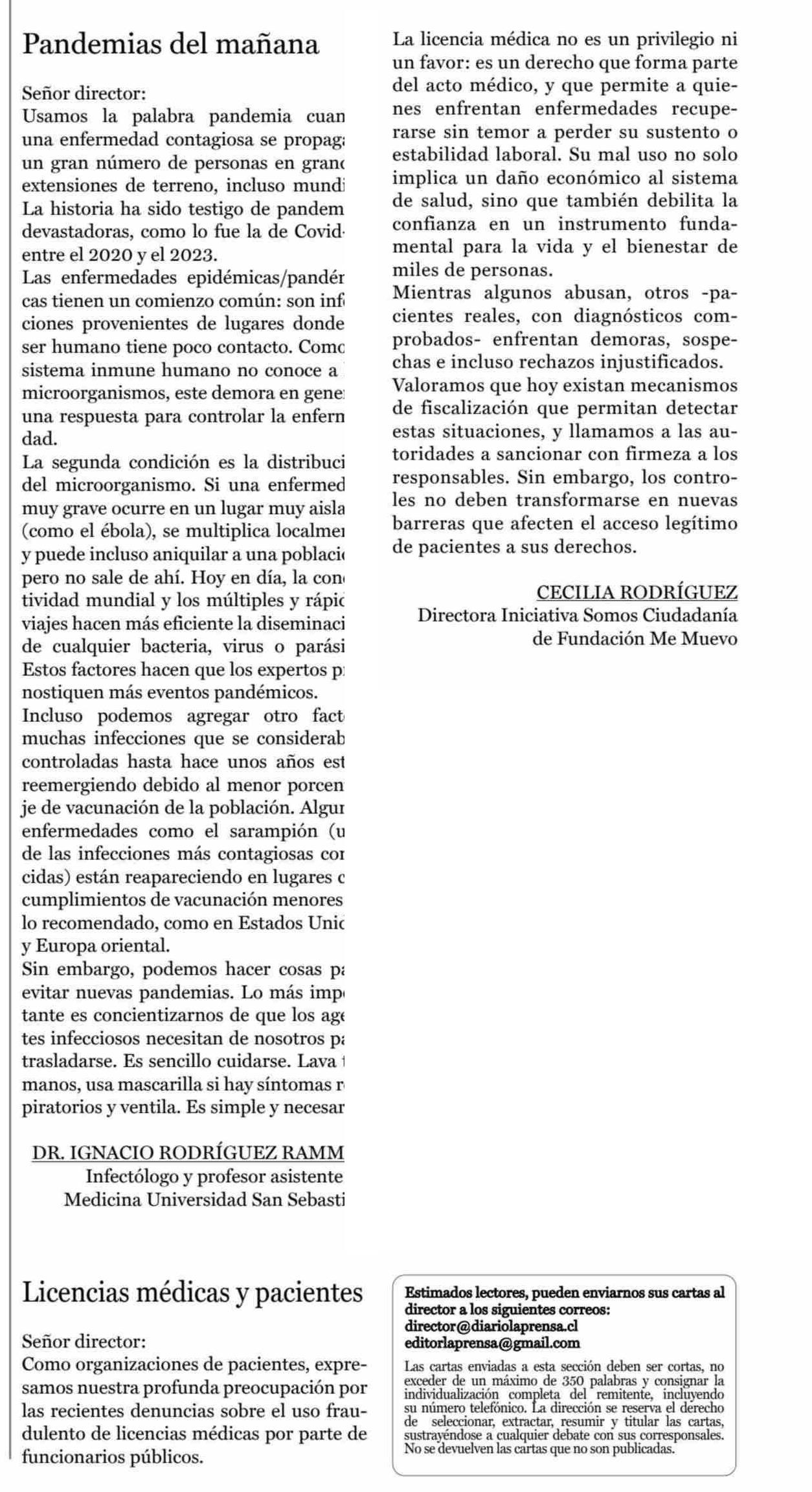 CARTAS: Licencias médicas y pacientes 24-05-2025 La Prensa de Curicó |