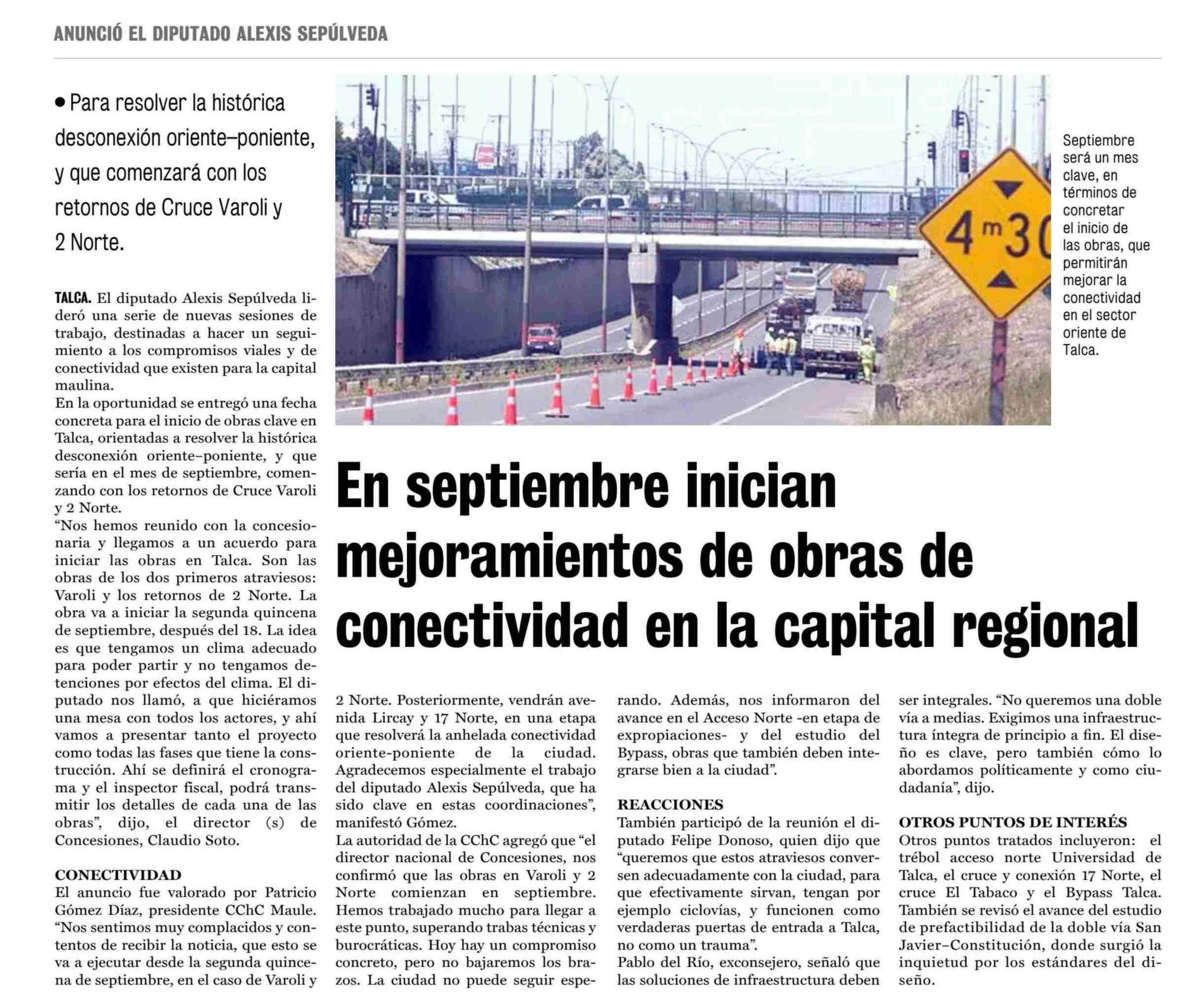 En septiembre inician mejoramientos de obras de conectividad en la capital regional 02-08-2025 La Prensa de Curicó |