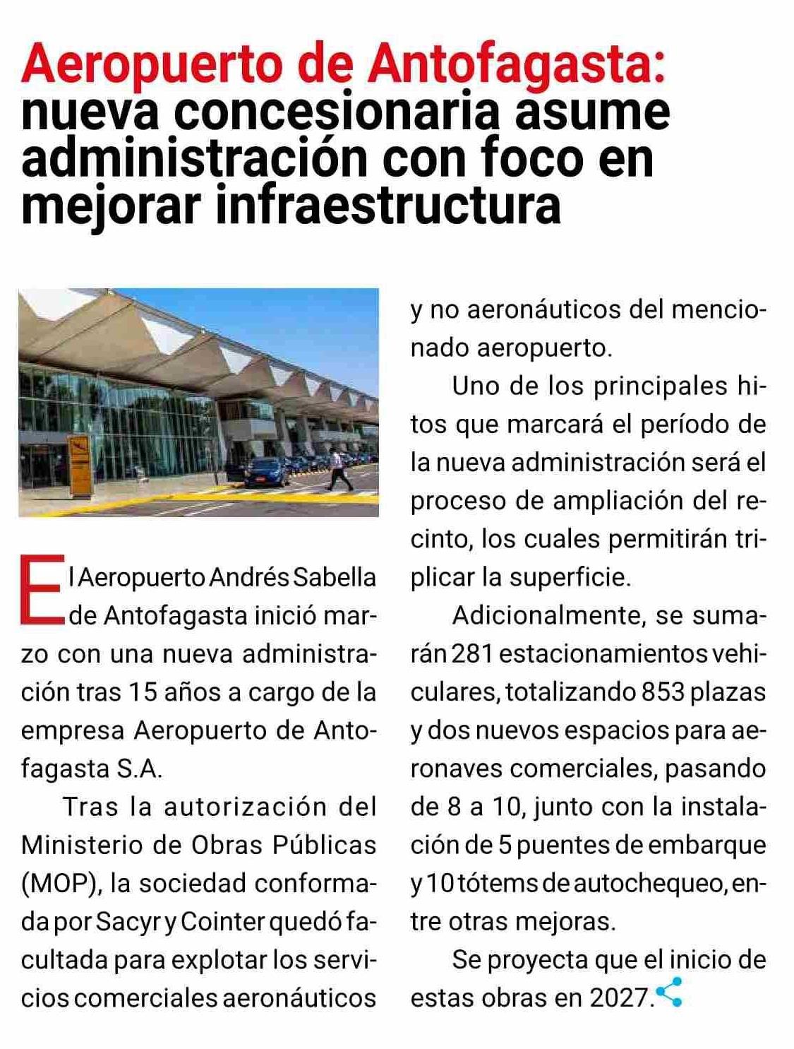Título: Aeropuerto de Antofagasta: nueva concesionaria asume administración con foco en mejorar infraestructura