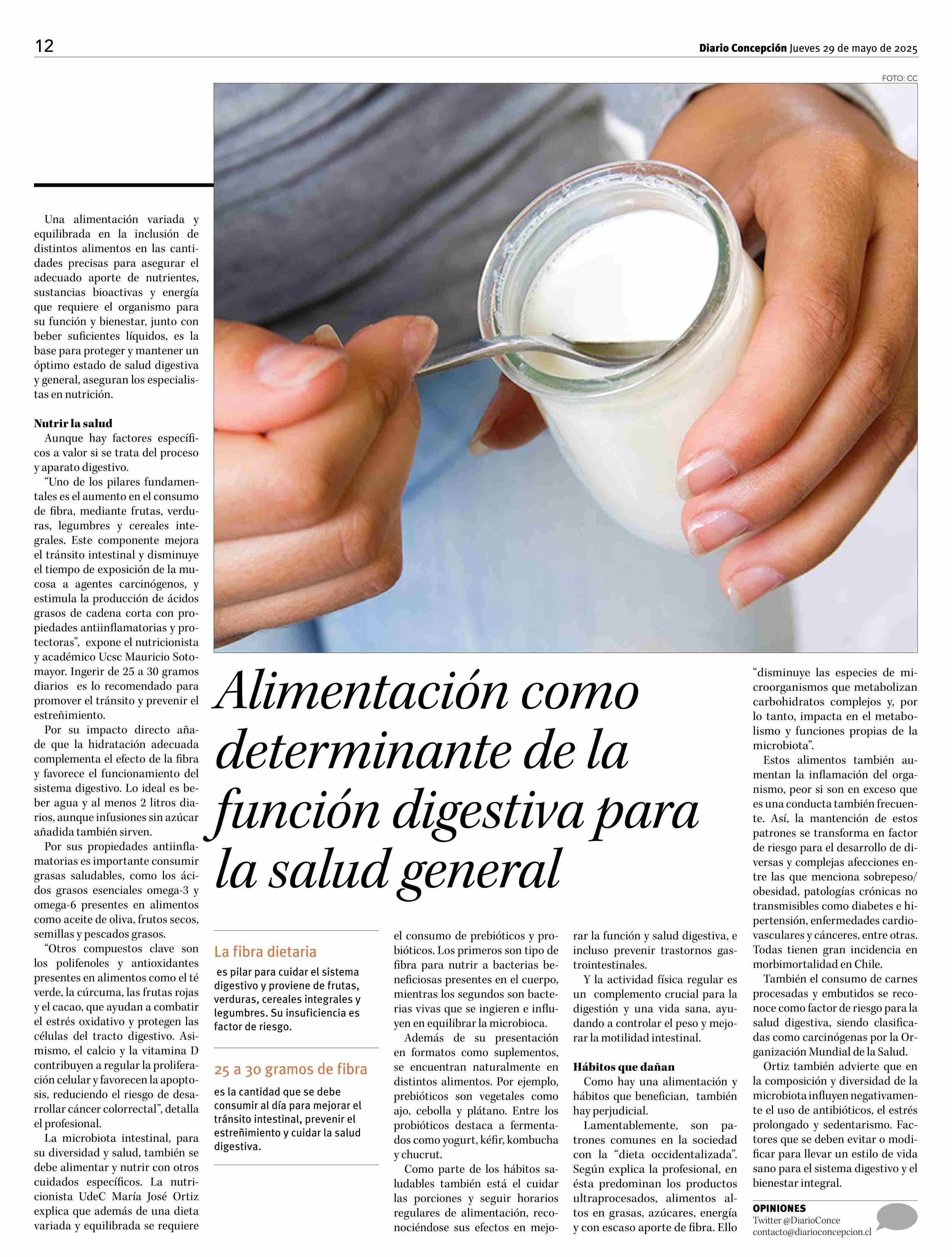 Alimentación como determinante de la función digestiva para la salud general 29-05-2025 Diario Concepción |