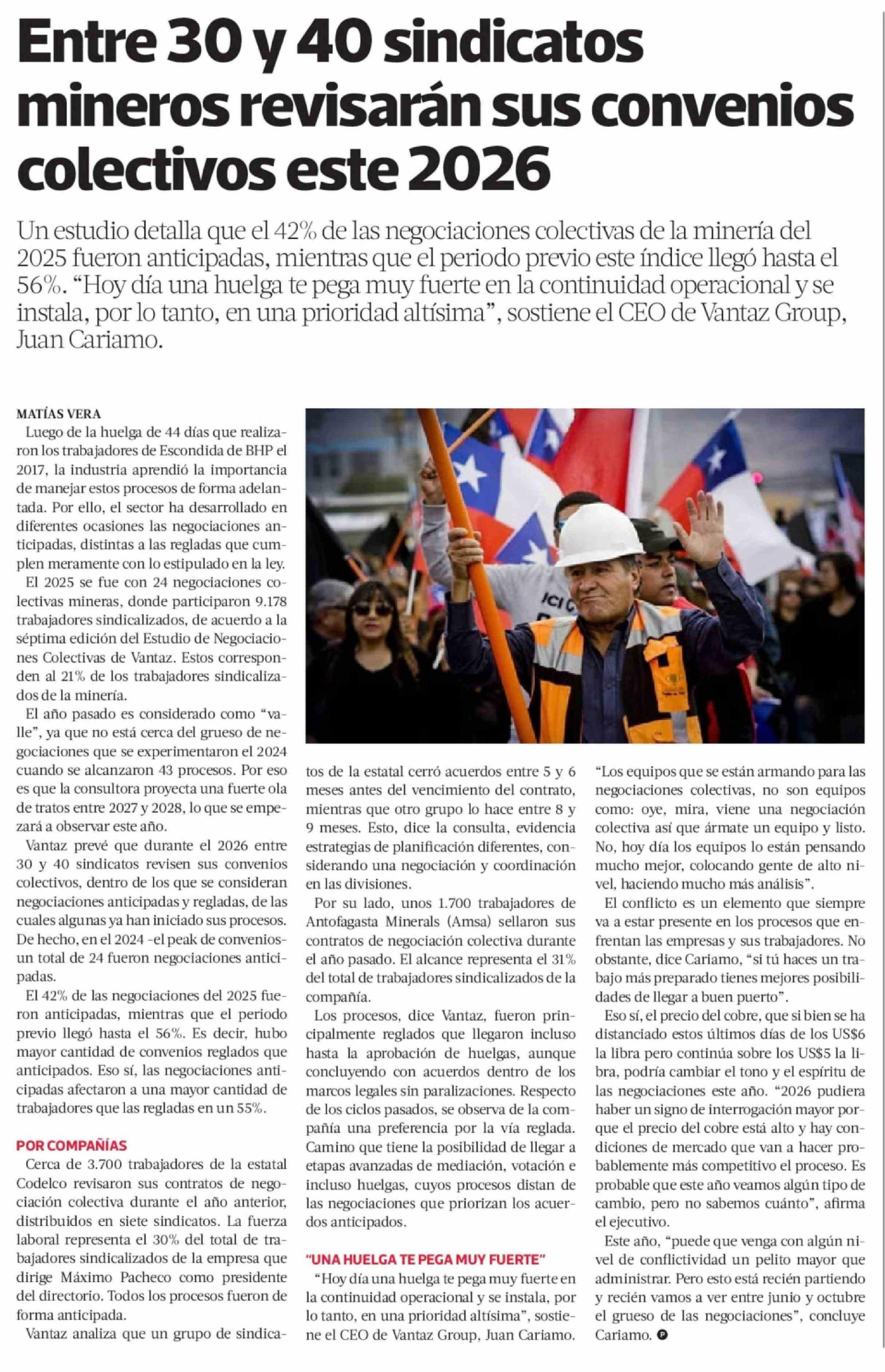 Título: Entre 30 y 40 sindicatos mineros revisarán sus convenios colectivos este 2026