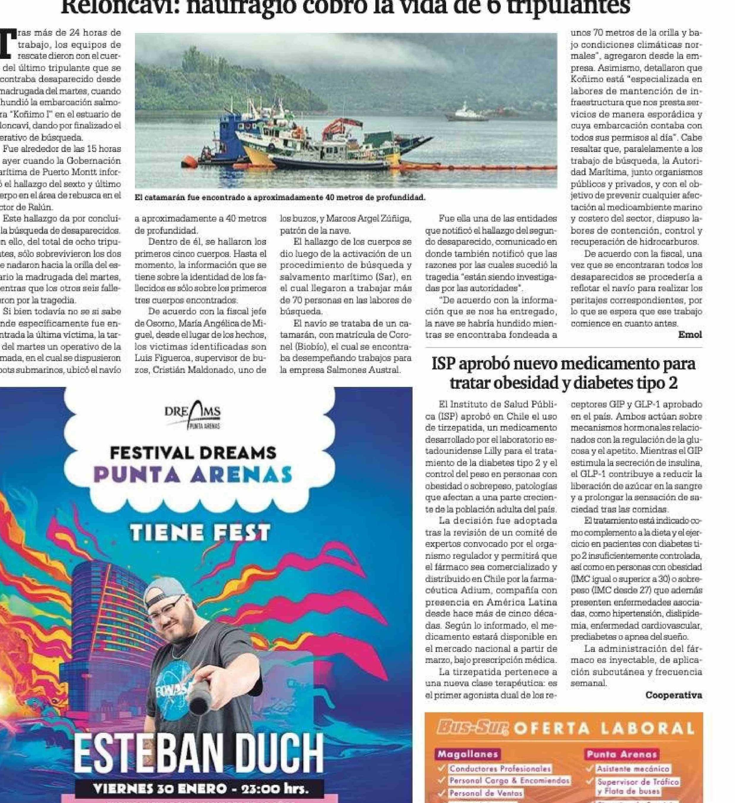 Encuentran cuerpo del último desaparecido en Reloncaví: naufragio cobró la vida de 6 tripulantes 29-01-2026 La Prensa Austral |