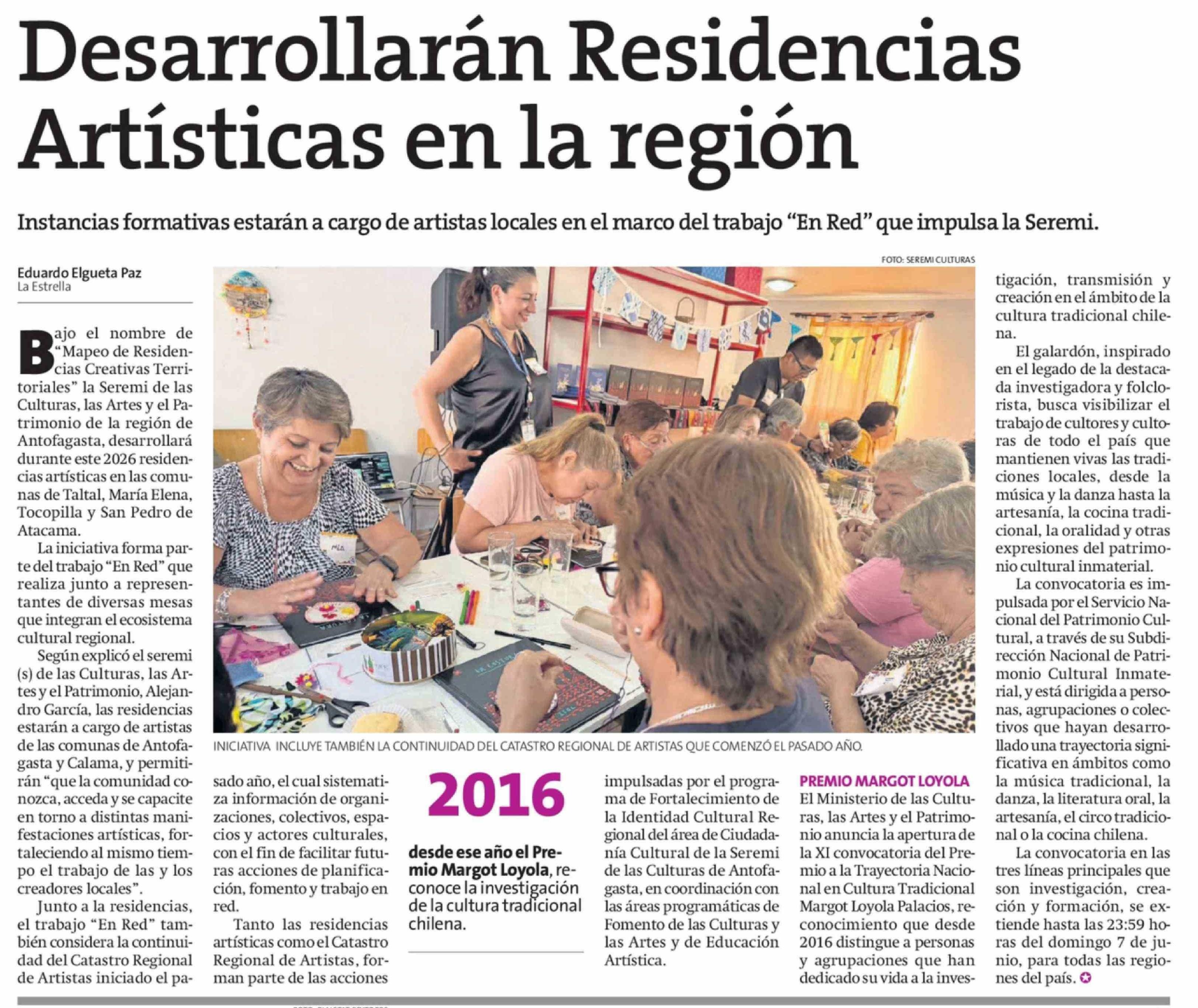 Desarrollarán Residencias Artísticas en la región 27-03-2026 La Estrella de Antofagasta |