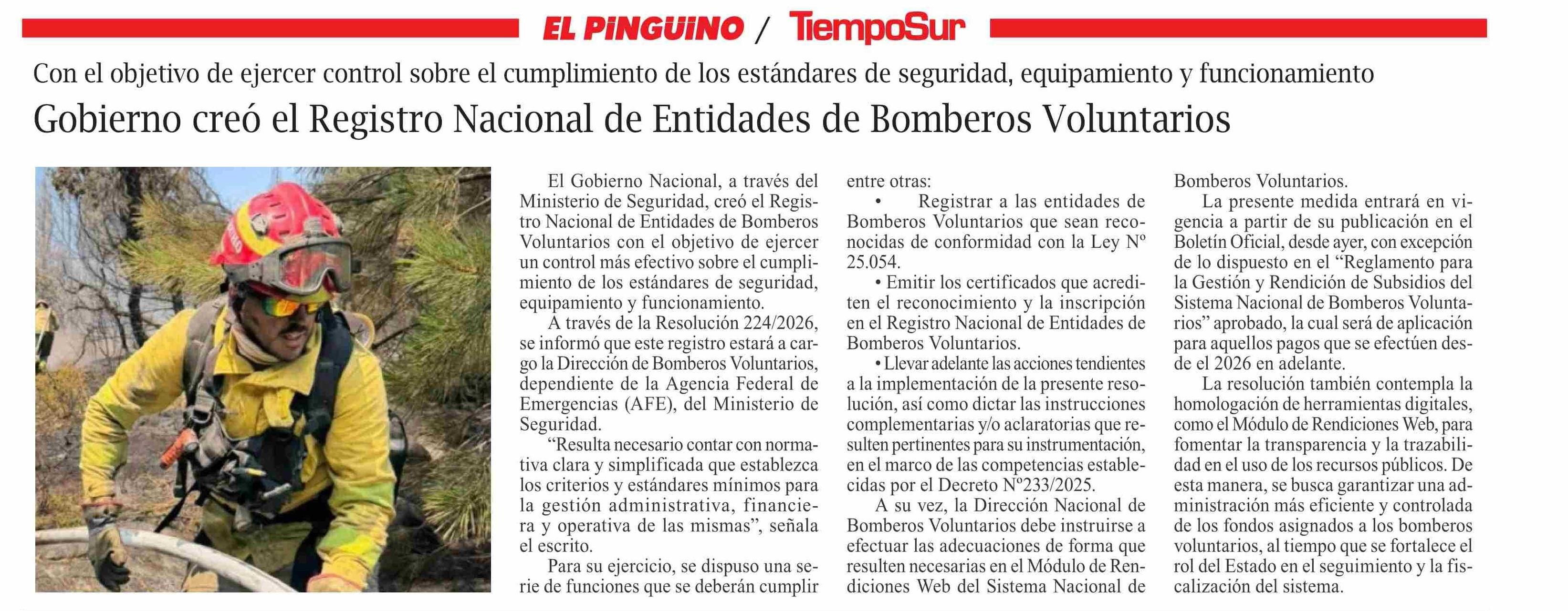 liempoSur creó el Registro Nacional de Entidades de Bomberos Voluntarios 14-03-2026 El Pingüino |