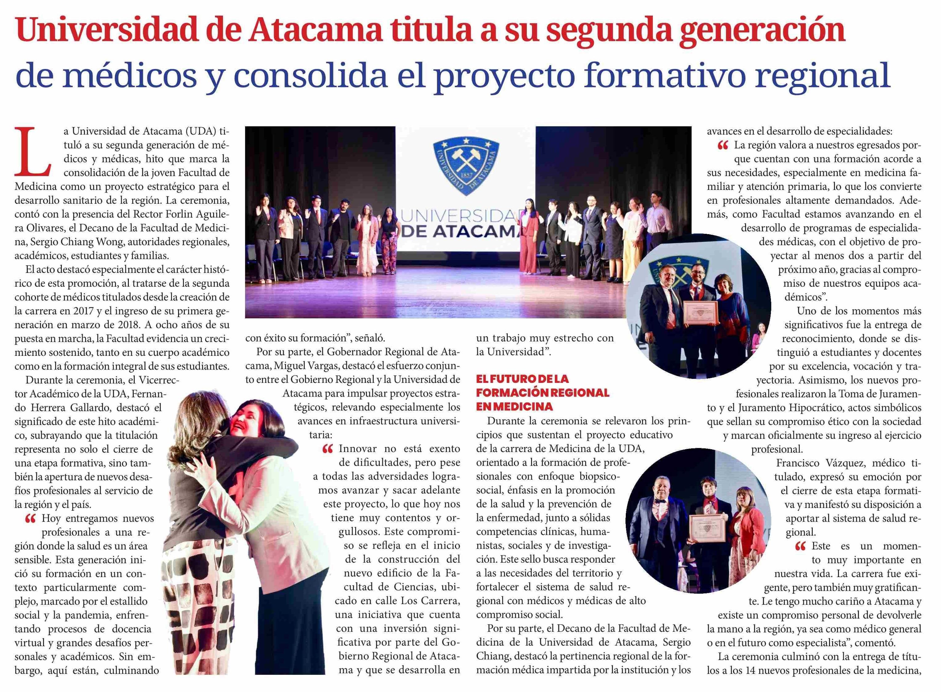 Universidad de Atacama titula a su segunda generación de médicos y consolida el proyecto formativo regional 26-01-2026 Diario Chañarcillo |