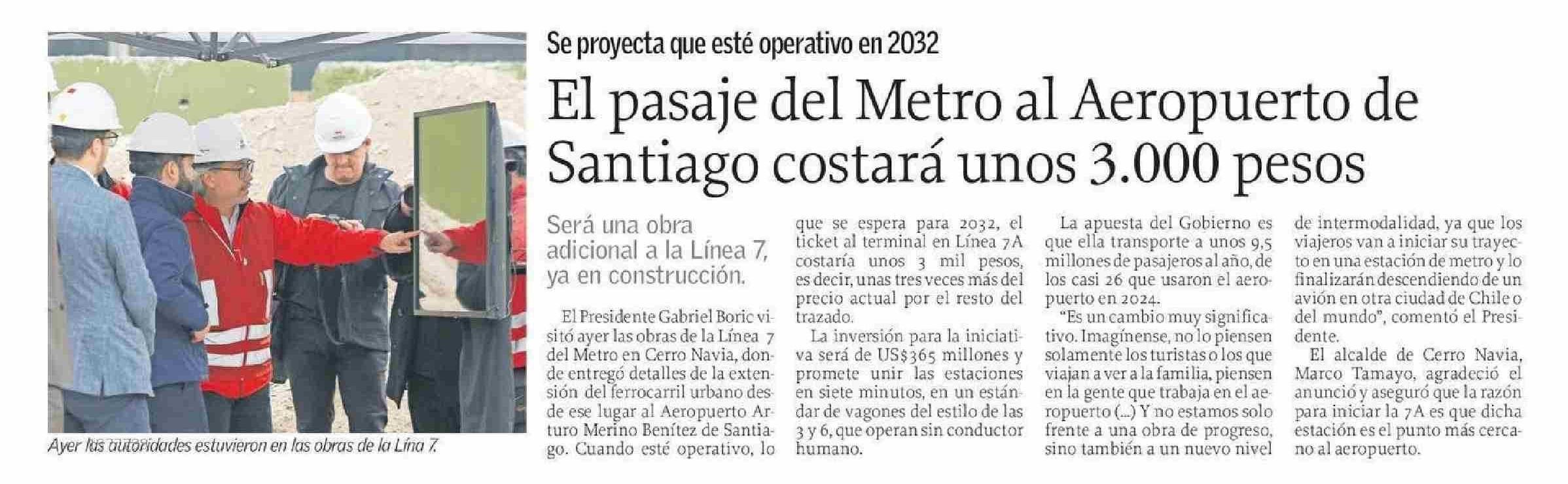 El pasaje del Metro al Aeropuerto de Santiago costará unos 3.000 pesos 03-06-2025 El Sur |
