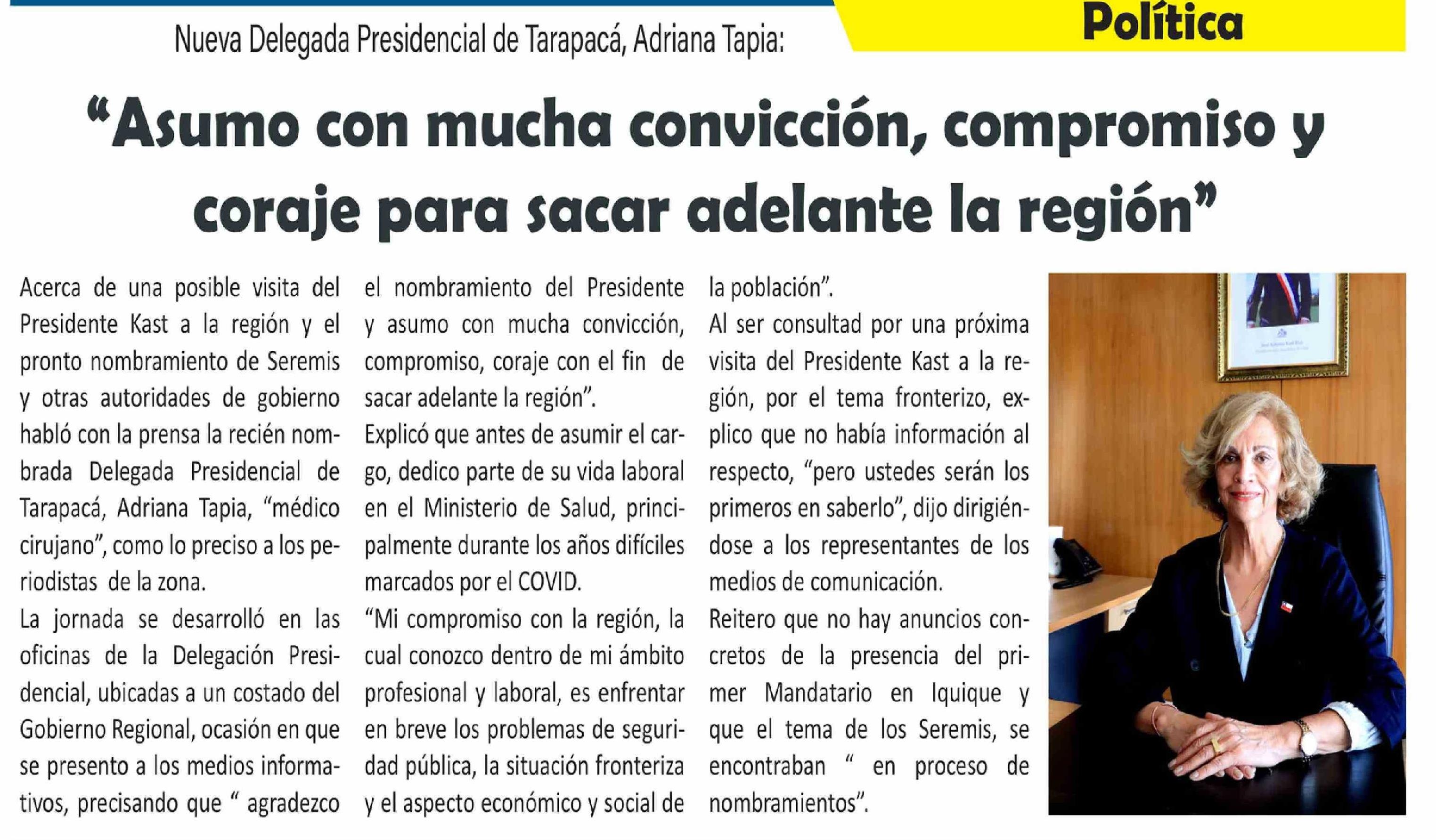 Título: "Asumo con mucha convicción, compromiso y coraje para sacar adelante la región"