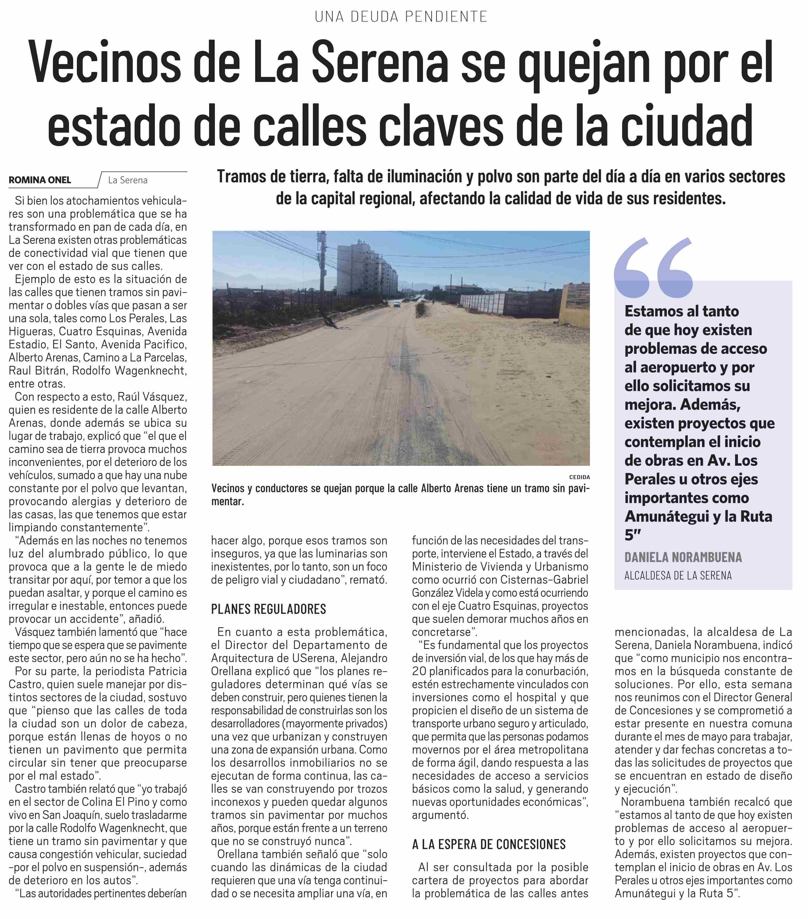 Vecinos de La Serena se quejan por el Vecinos de La Serena se quejan por el estado de calles claves de la ciudad estado de calles claves de la ciudad 28-04-2025 El Día |
