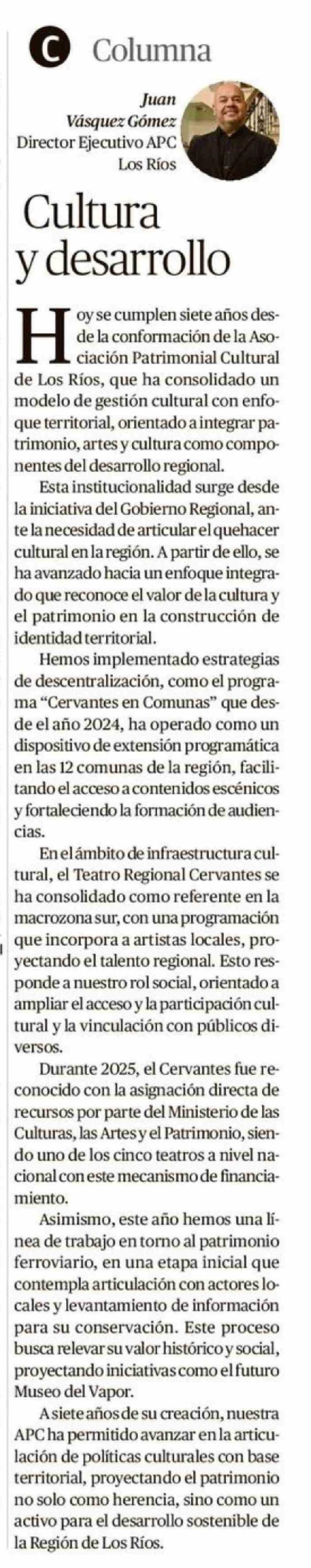 COLUMNAS DE OPINIÓN: Cultura y desarrollo 19-04-2026 Diario Austral Región de Los Ríos |