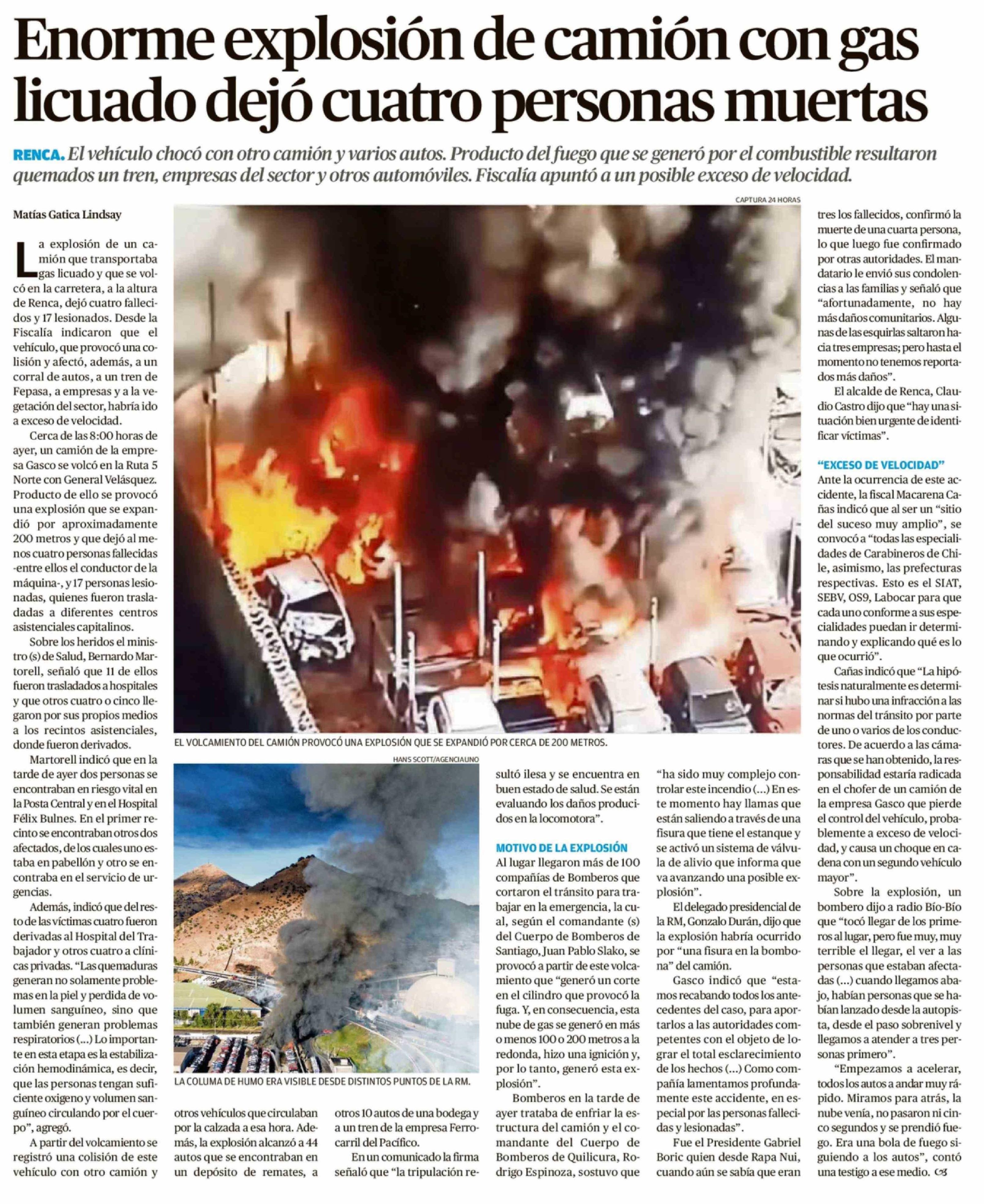Título: Enorme explosión de camión con gas licuado dejó cuatro personas muertas