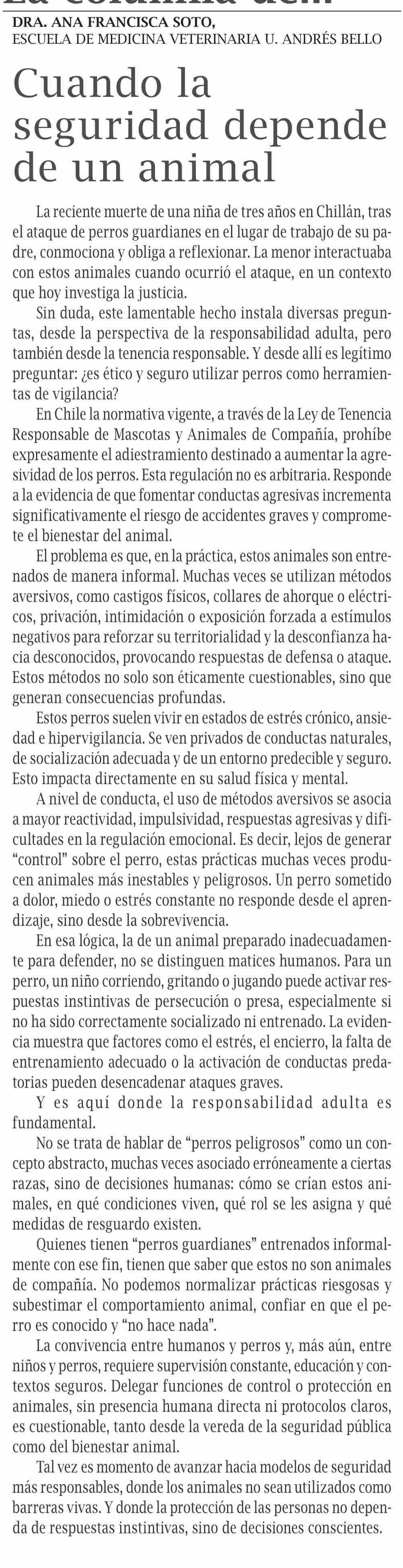 Título: Columnas de Opinión: Cuando la seguridad depende de un animal