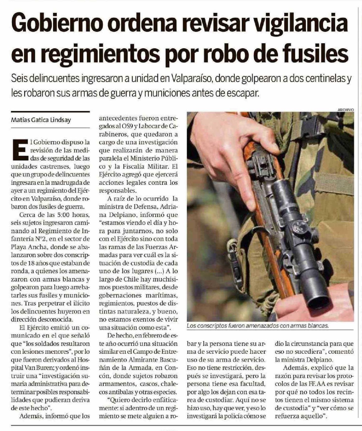 | Título: | Gobierno ordena revisar vigilancia en regimientos por robo de fusiles |