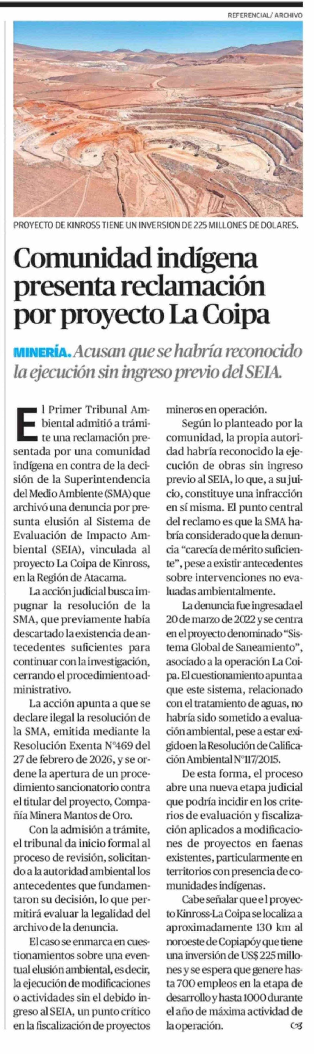 Título: Comunidad indígena presenta reclamación por proyecto La Coipa