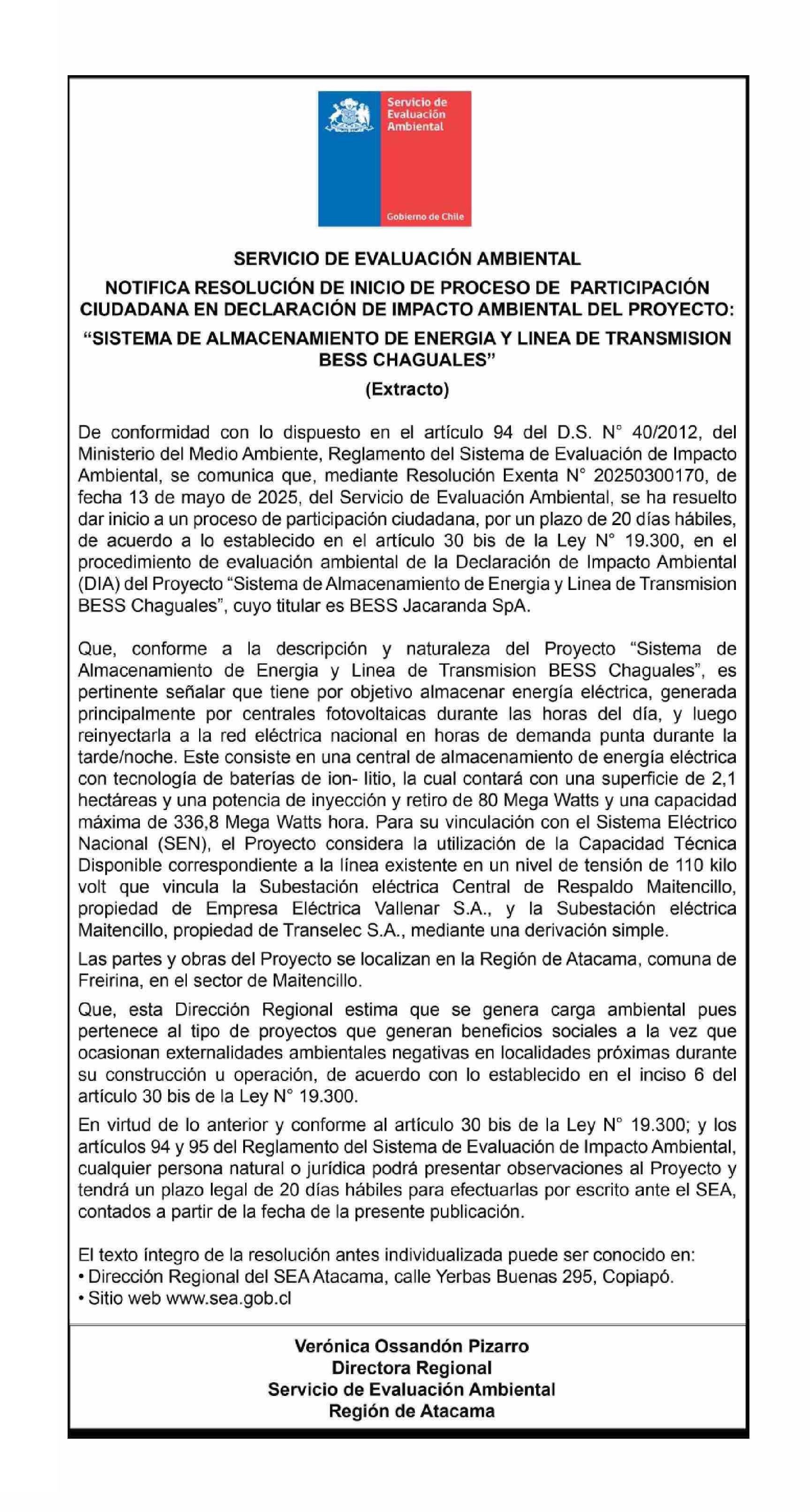 | Fecha: | 24-05-2025 | Sector: | Noticia general | Región: | Región de Atacama |