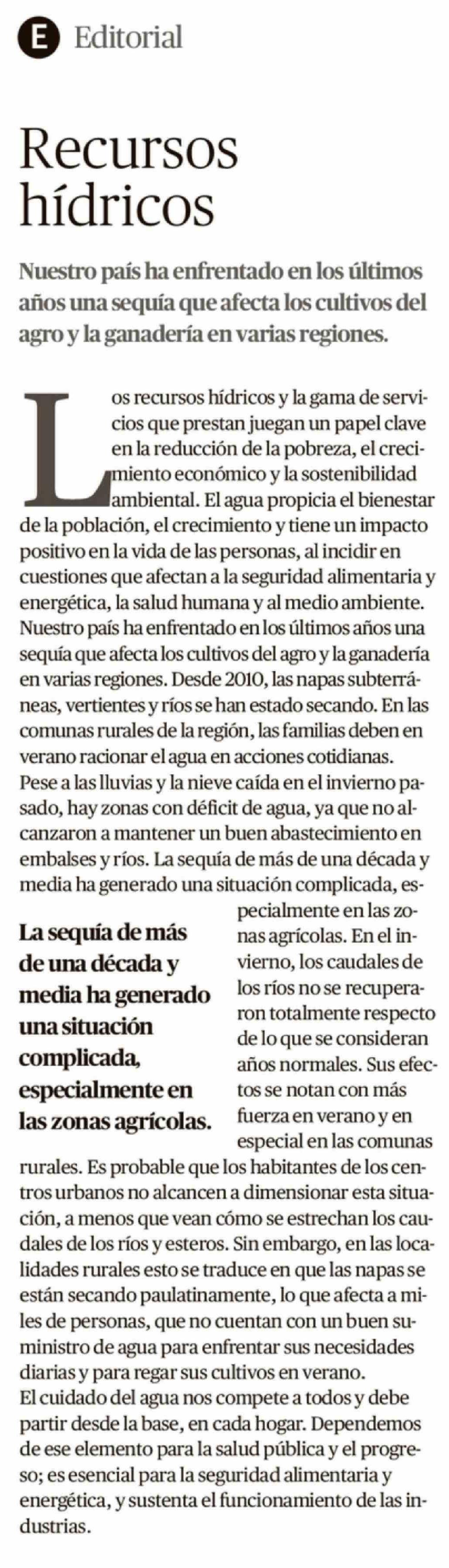 Editorial: Recursos hídricos