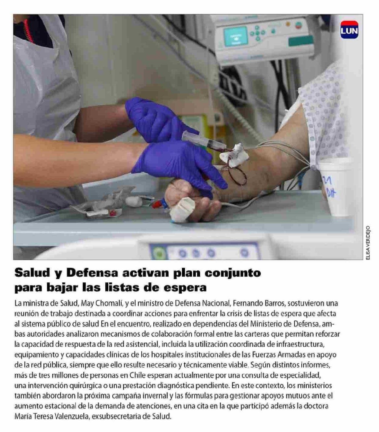 | Título: | Salud y Defensa activan plan conjunto para bajar las listas de espera |