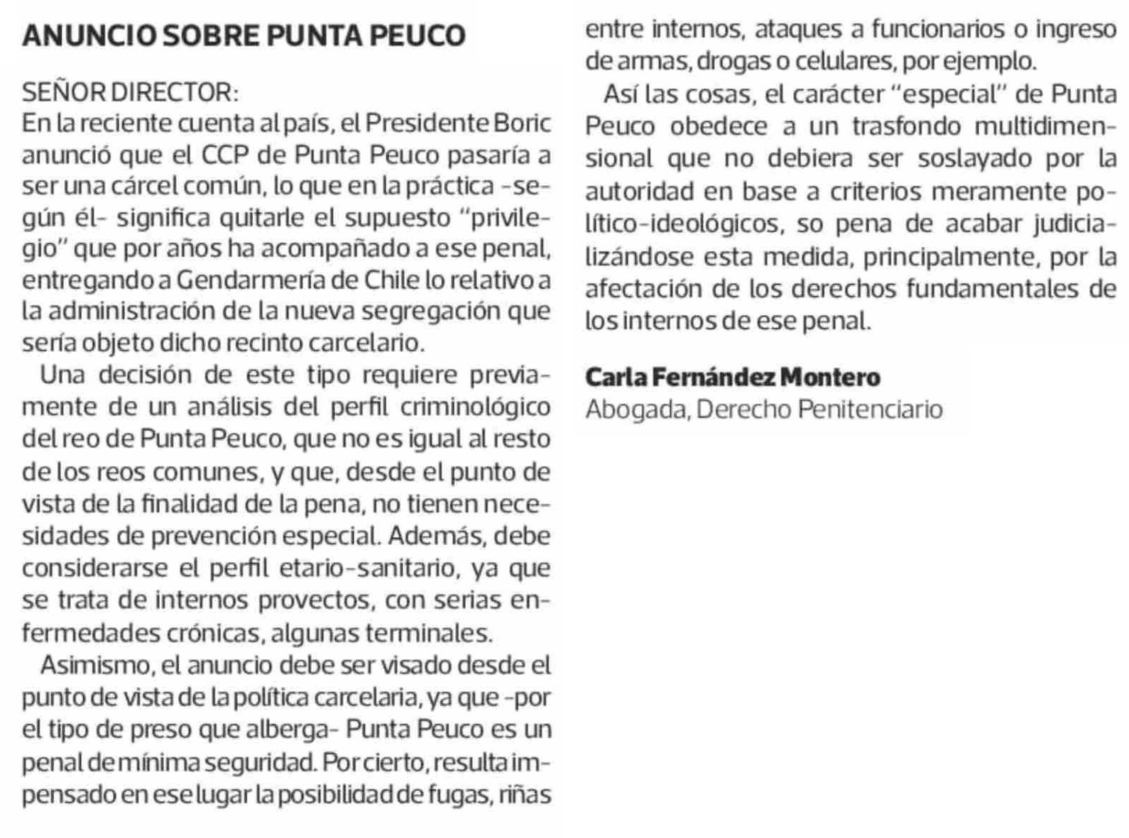 CARTAS: ANUNCIO SOBRE PUNTA PEUCO 04-06-2025 La Tercera |