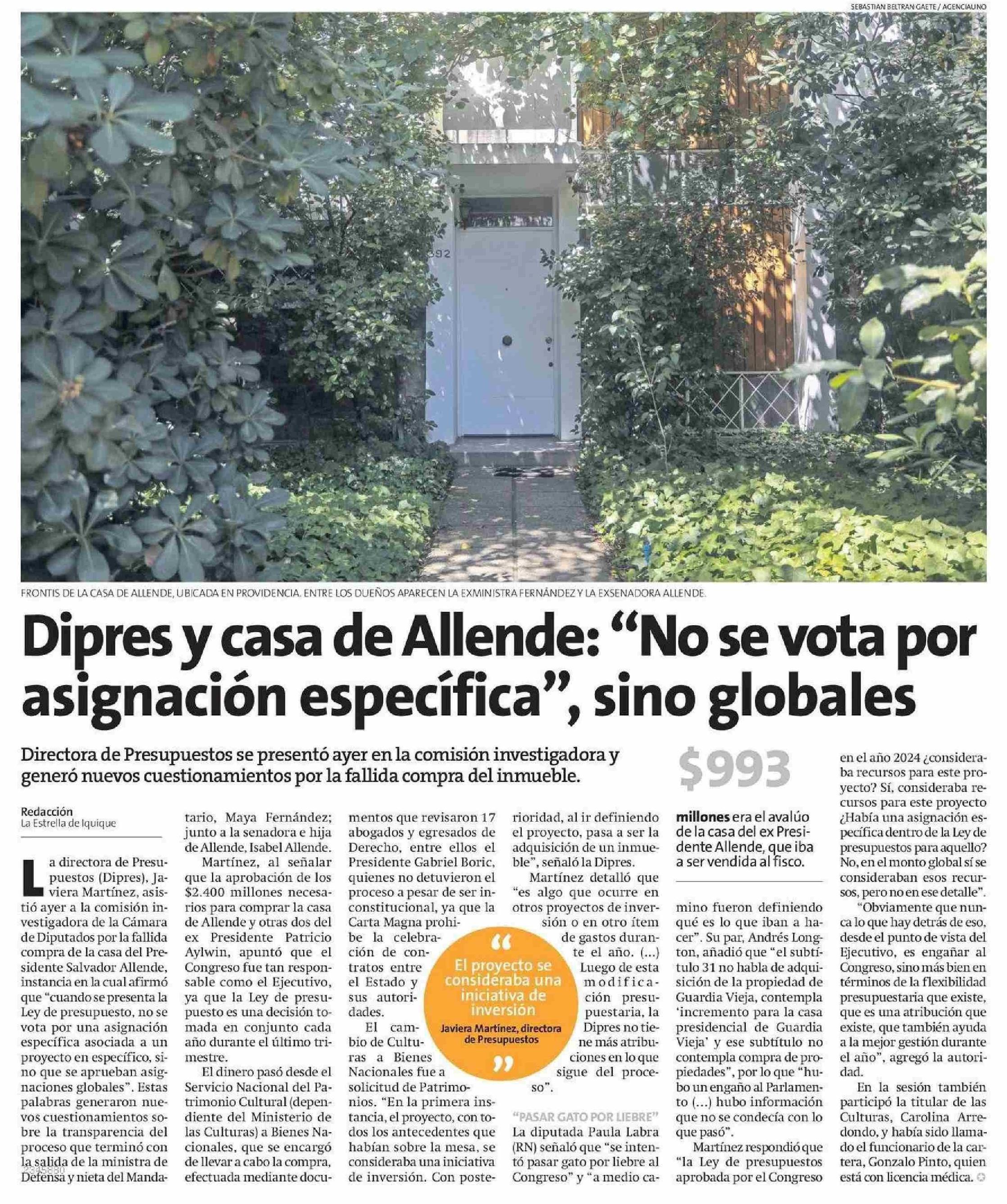 Dipres y casa de Allende: “No se vota por asignación específica”, sino globales 10-06-2025 La Estrella de Iquique |
