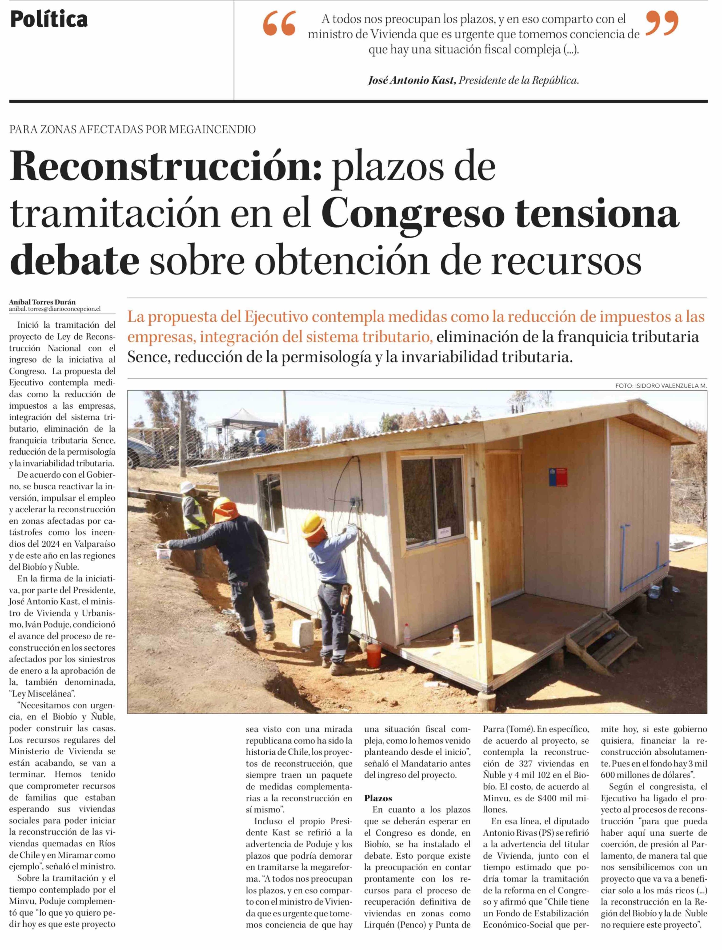 Título: Reconstrucción: plazos de tramitación en el Congreso tensiona debate sobre obtención de recursos