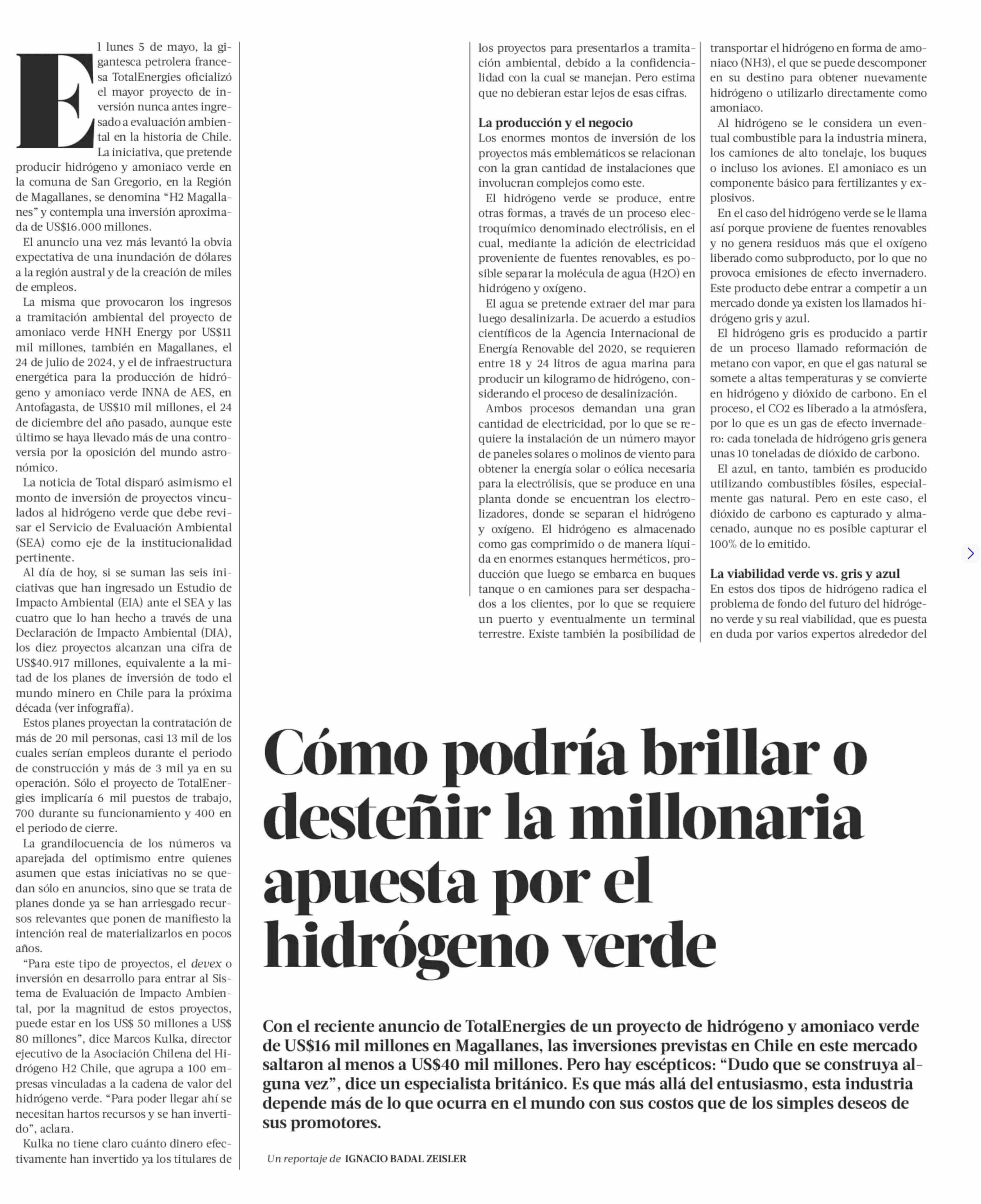 Cómo podría brillar o desteñir la millonaria apuesta por el hidrógeno verde 17-05-2025 La Tercera |