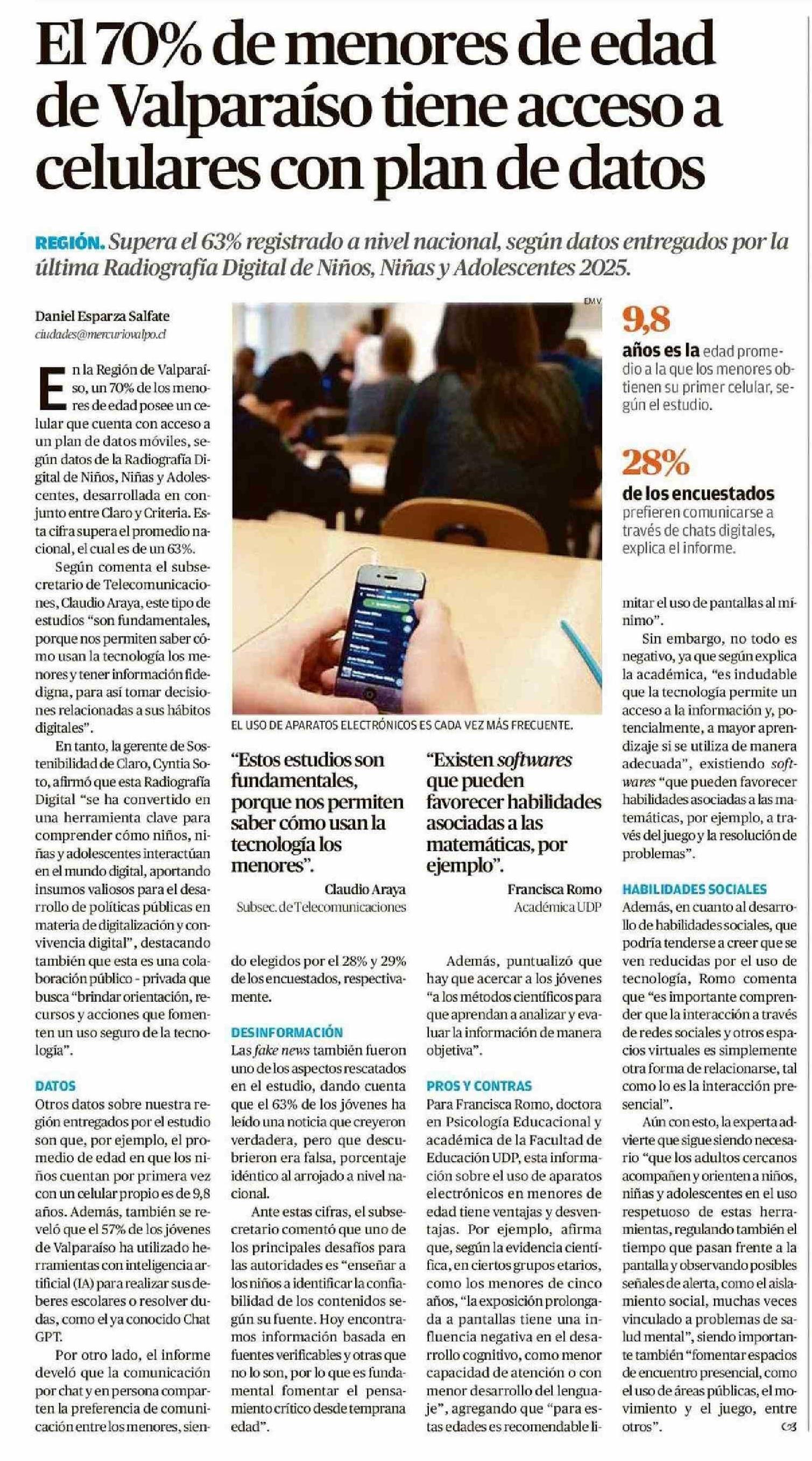 Título: El 70% de menores de edad de Valparaíso tiene acceso a celulares con plan de datos