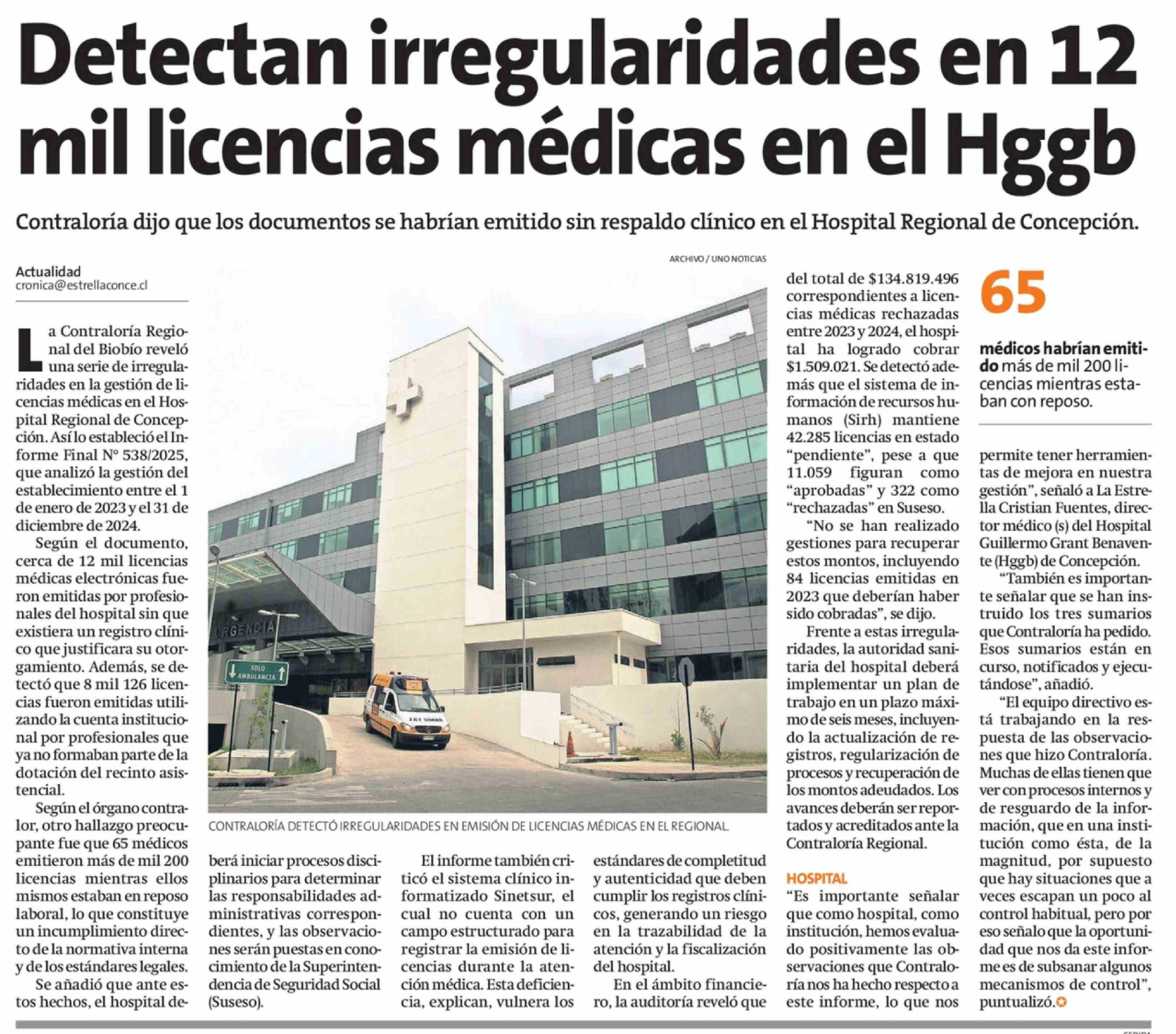 Título: Detectan irregularidades en 12 mil licencias médicas en el Hggb
