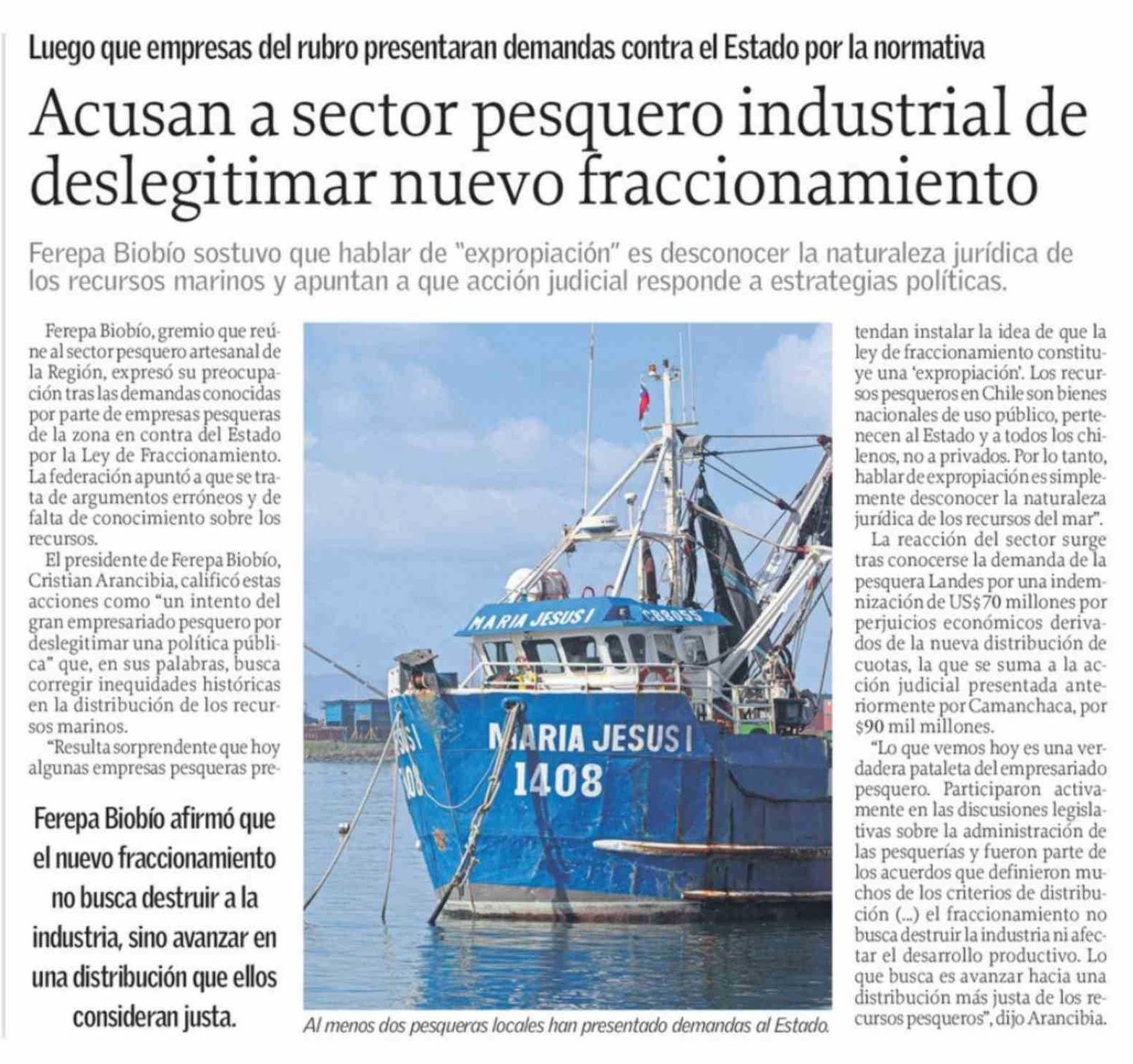 Acusan a sector pesquero industrial de deslegitimar nuevo fraccionamiento 07-03-2026 El Sur |
