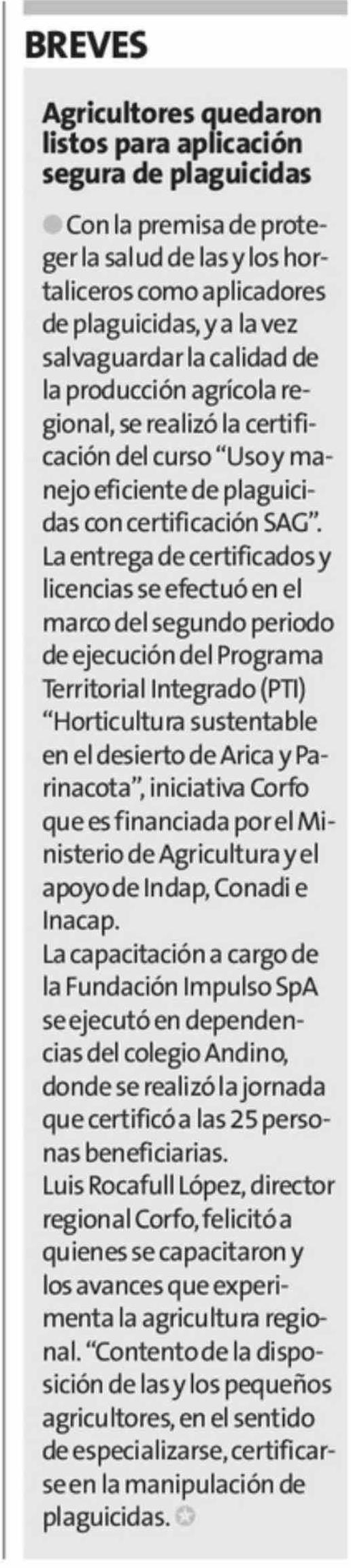 Título: Agricultores quedaron listos para aplicación segura de plaguicidas