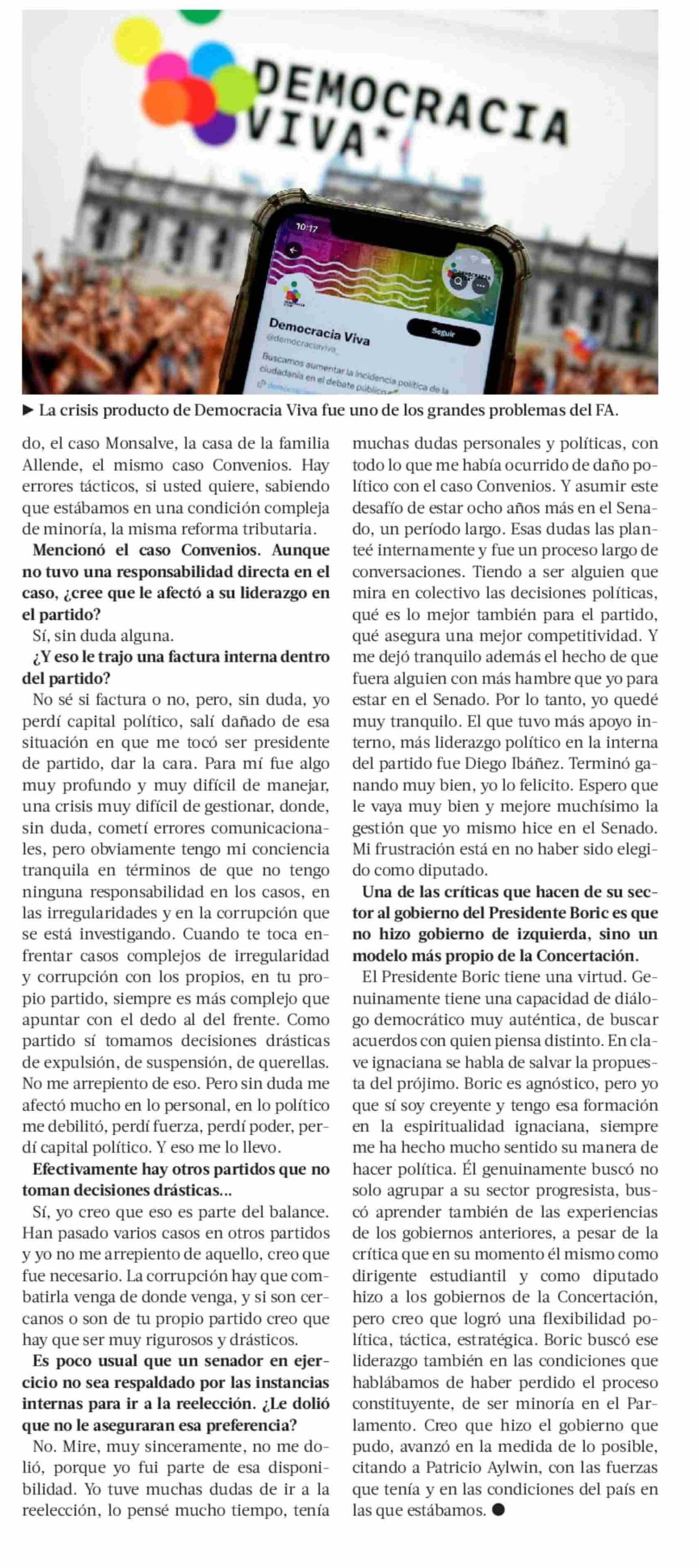 | Título: | Latorre: “En el caso Convenios, sin duda, perdí capital político, cometí errores, pero tengo mi conciencia tranquila” |