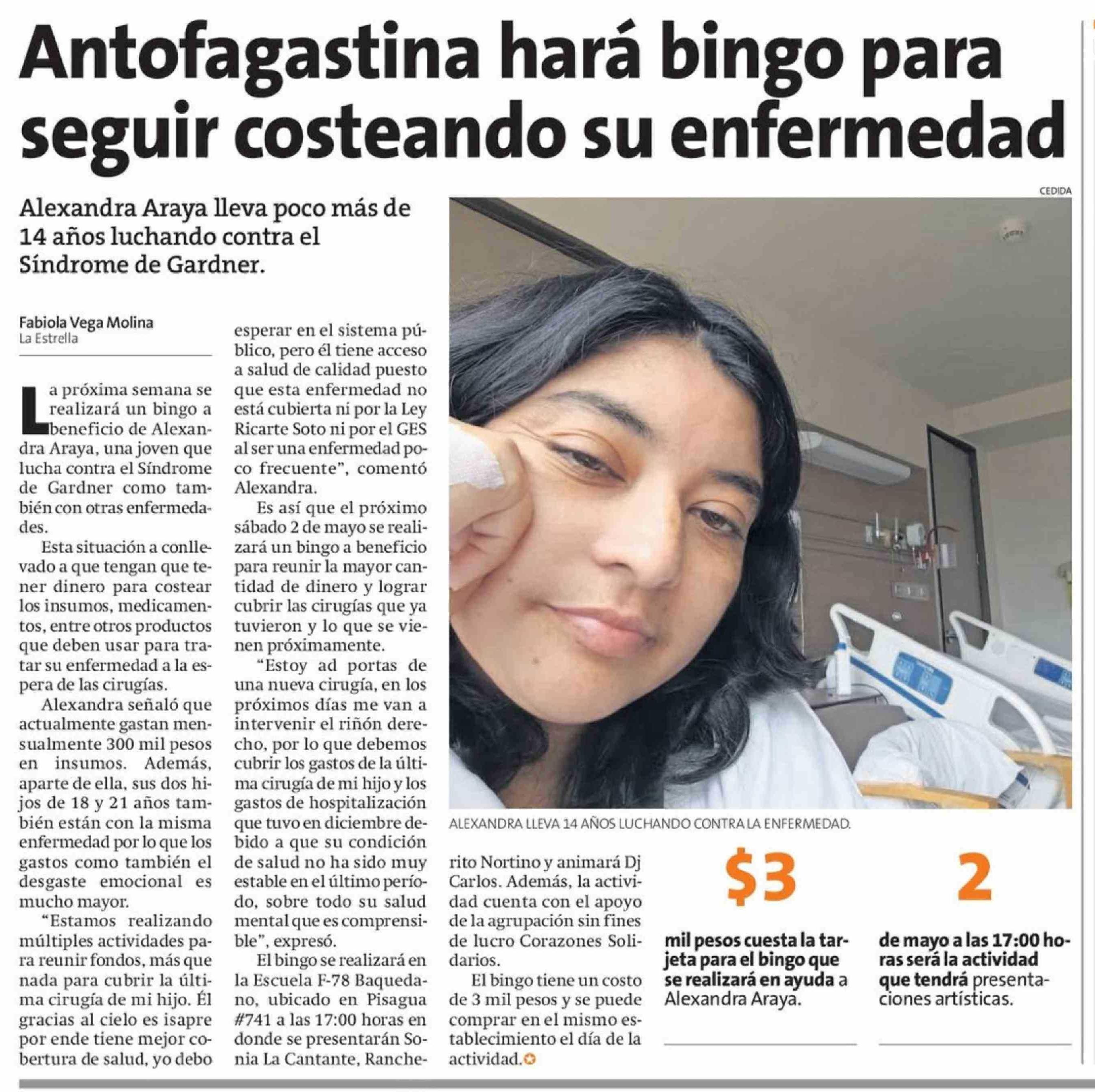 Antofagastina hará bingo para seguir costeando su enfermedad 25-04-2026 La Estrella de Antofagasta |