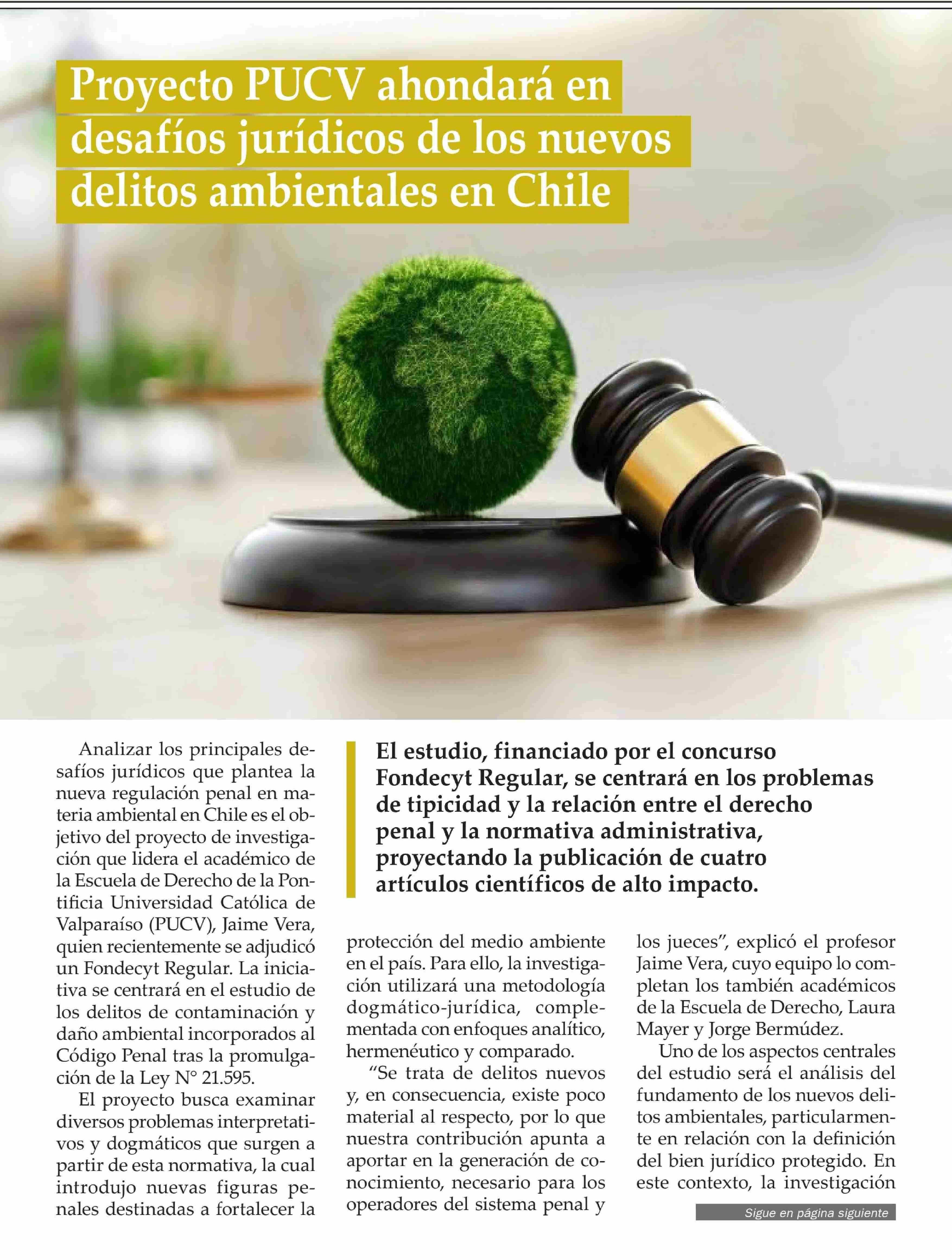 Título: Proyecto PUCV ahondará en desafios juridicos de los nuevos delitos ambientales en Chile