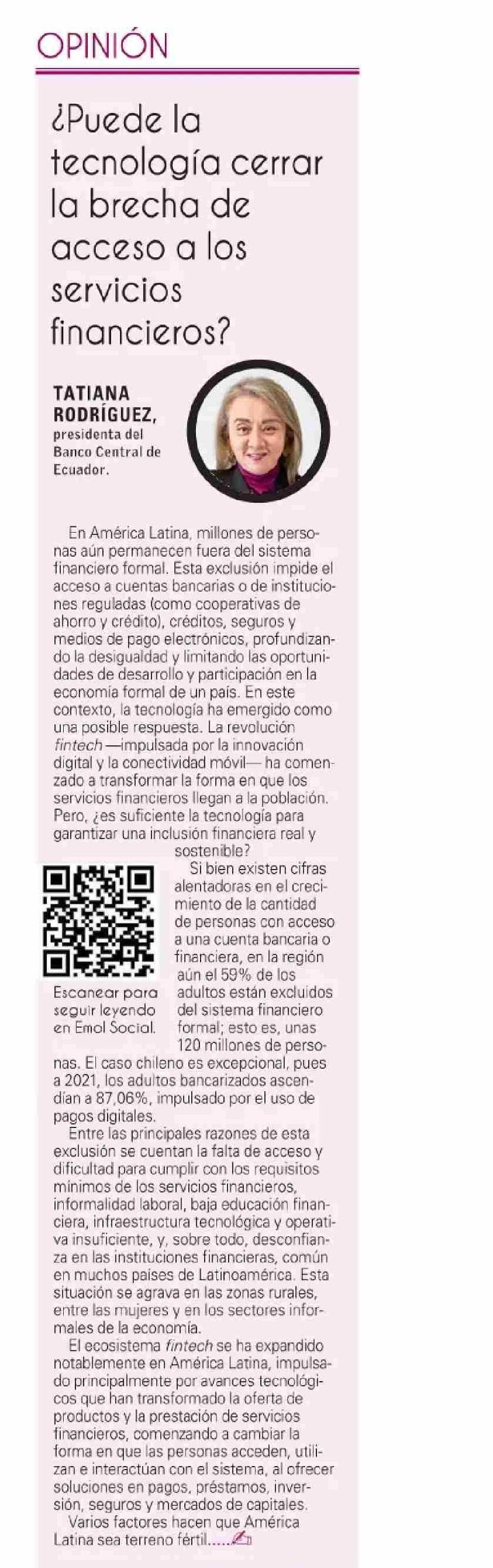 Título: COLUMNAS DE OPINIÓN: OPINIÓN ¿Puede la tecnología cerrar la brecha de acceso a los servicios financieros?