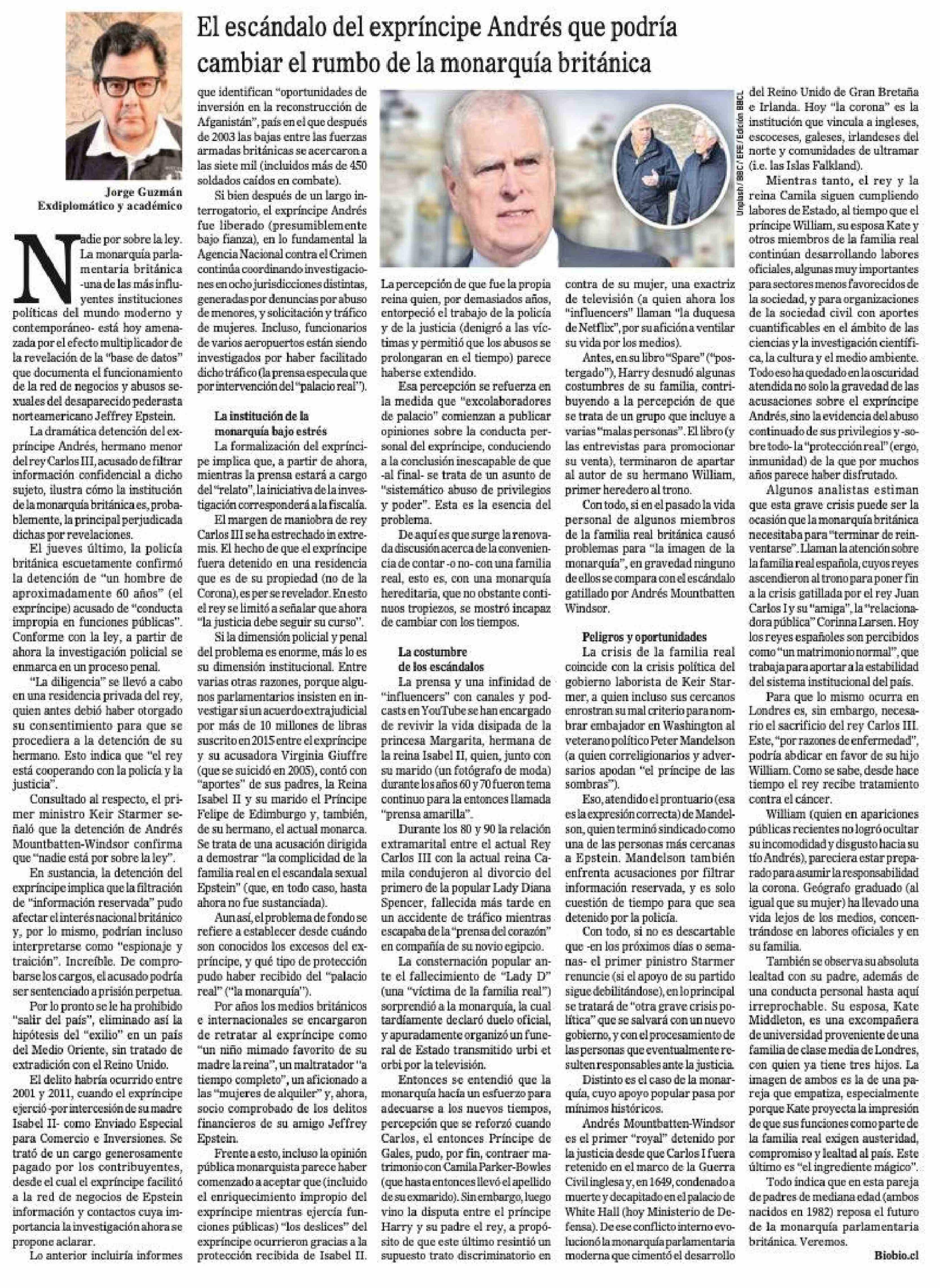 Título: Columnas de Opinión: El escándalo del expríncipe Andrés que podría cambiar el rumbo de la monarquía británica
