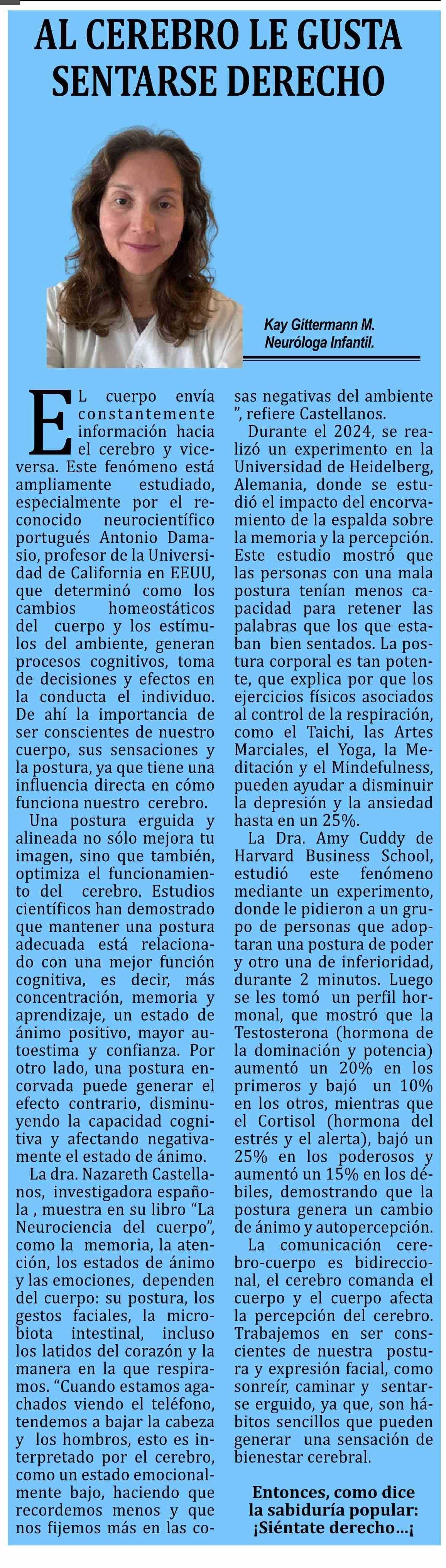 Columnas de Opinión: AL CEREBRO LE GUSTA SENTARSE DERECHO