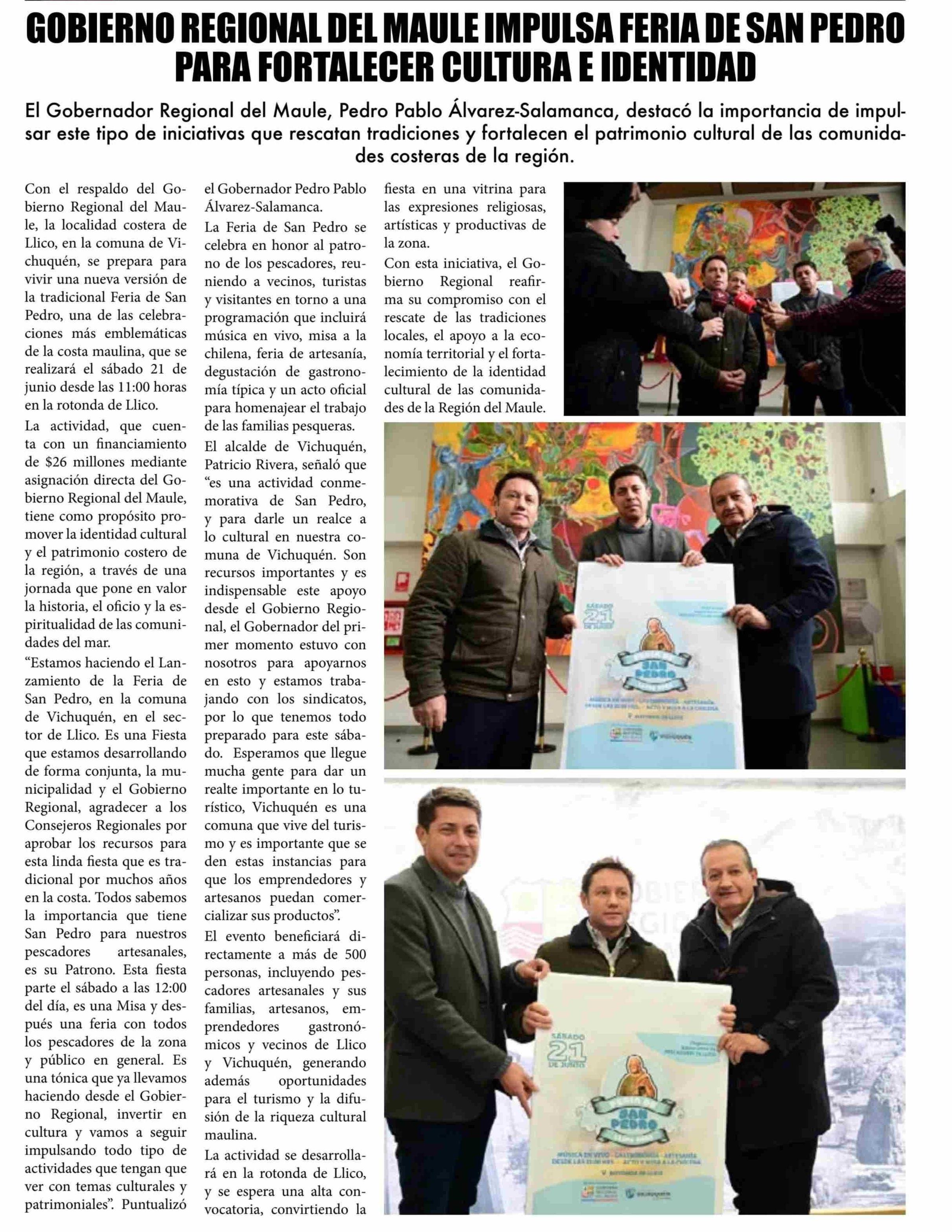 GOBIERNO REGIONAL DEL MAULEIMPULSA FERIA DESAN PEDRO PARA FORTALECER CULTURA E IDENTIDAD 19-06-2025 El Lector |