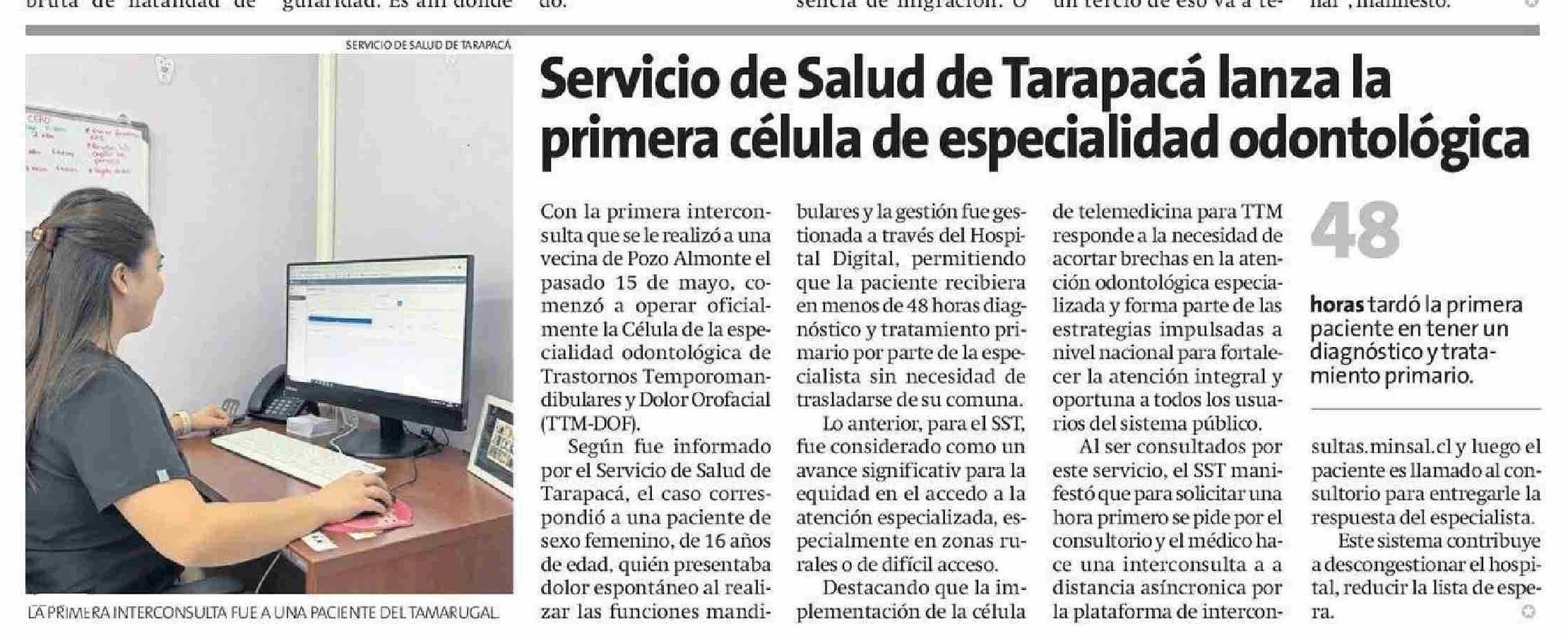Servicio de Salud de Tarapacá lanza la primera célula de especialidad odontológica 20-05-2025 La Estrella de Iquique |