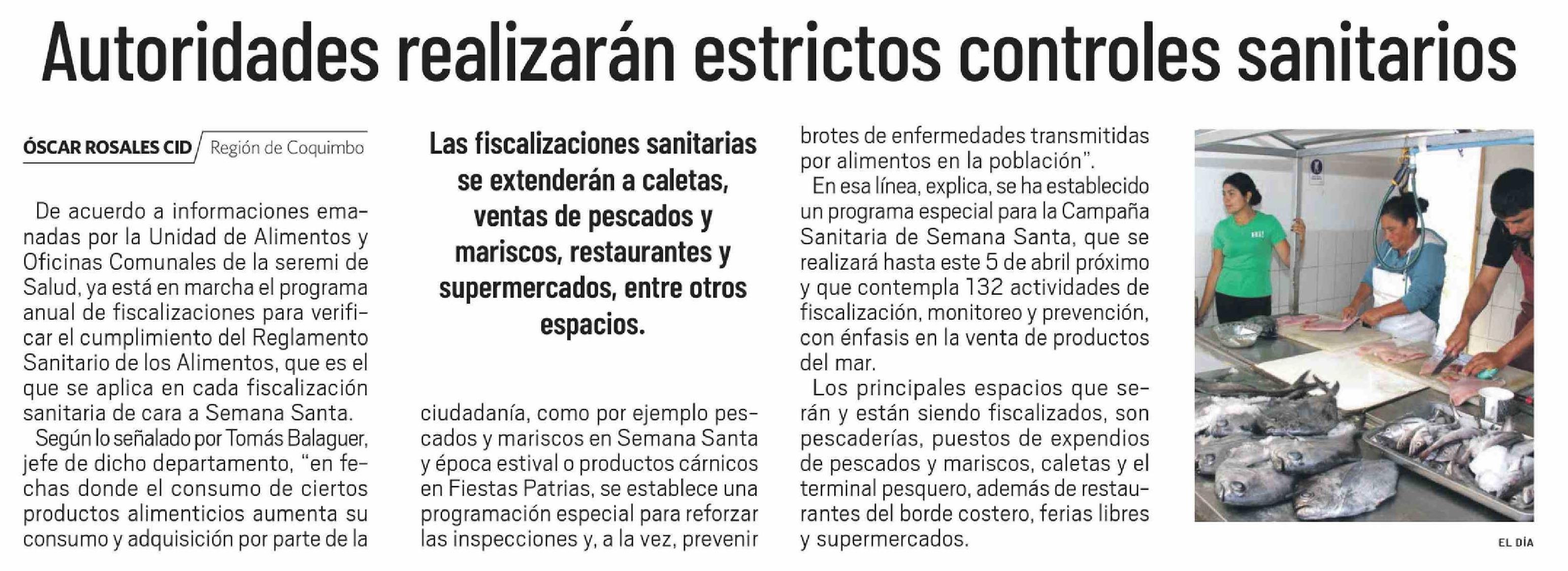 Autoridades realizarán estrictos controles sanitarios 24-03-2026 El Día |