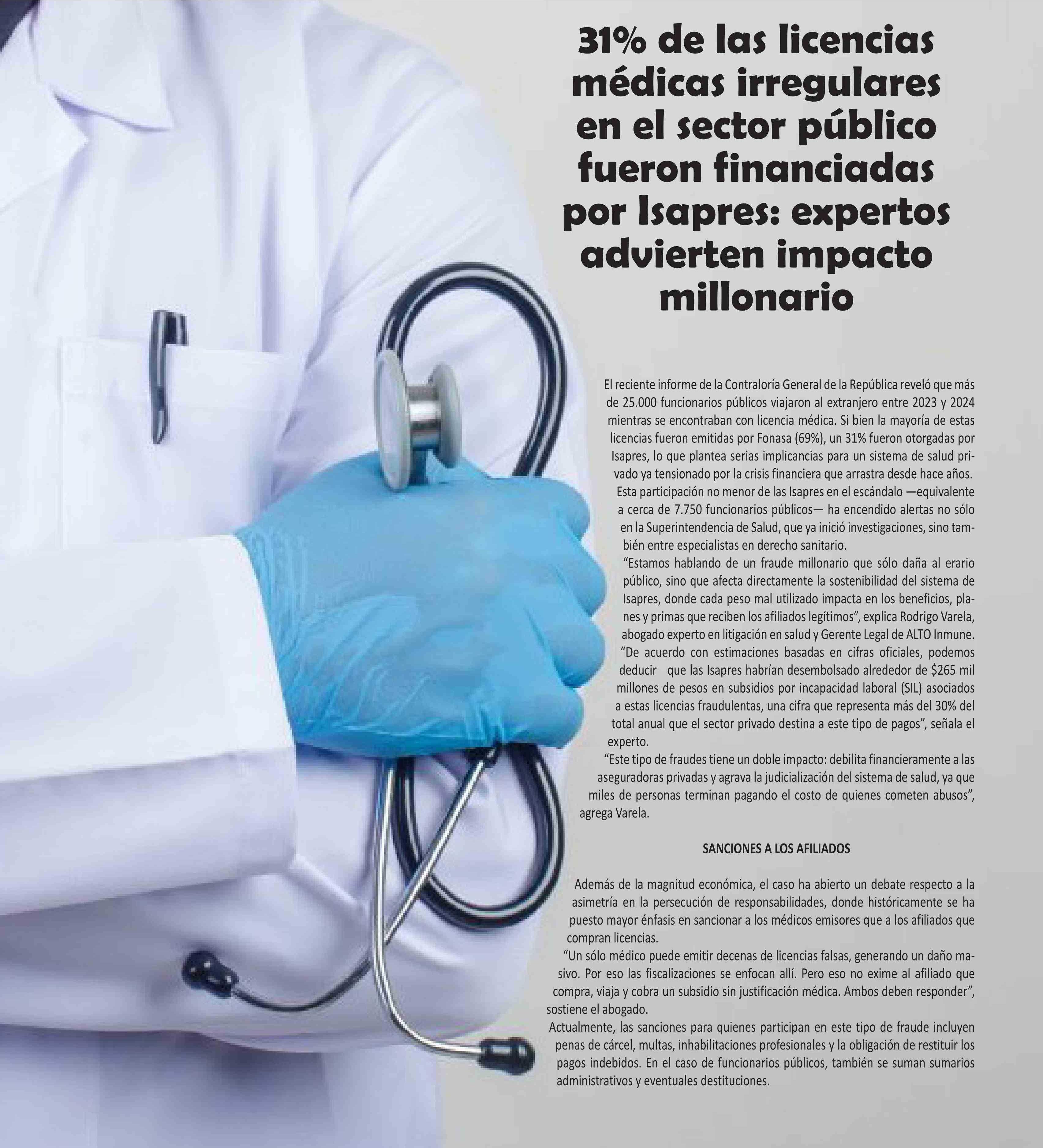 | Título: | 31% de las licencias médicas irregulares en el sector público fueron financiadas por Isapres: expertos advierten impacto millonario |