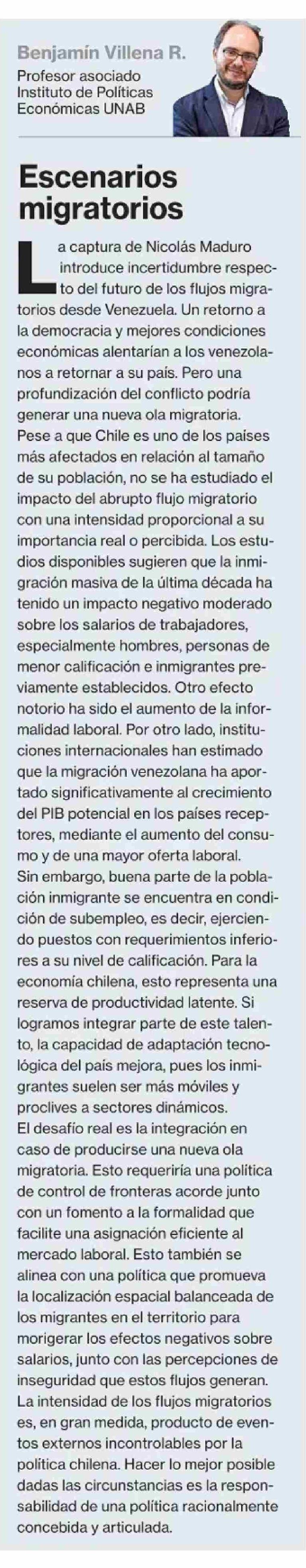Columnas de Opinión: Escenarios migratorios 19-01-2026 La Segunda |