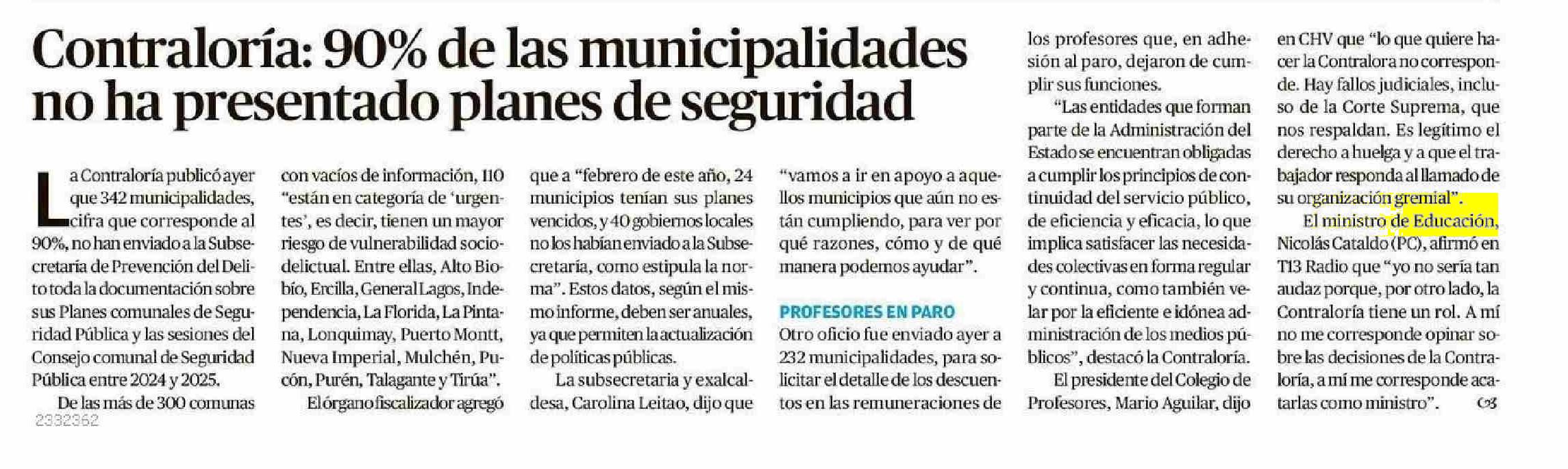 Contraloría: 90% de las municipalidades no ha presentado planes de seguridad 10-06-2025 El Austral de la Araucanía |