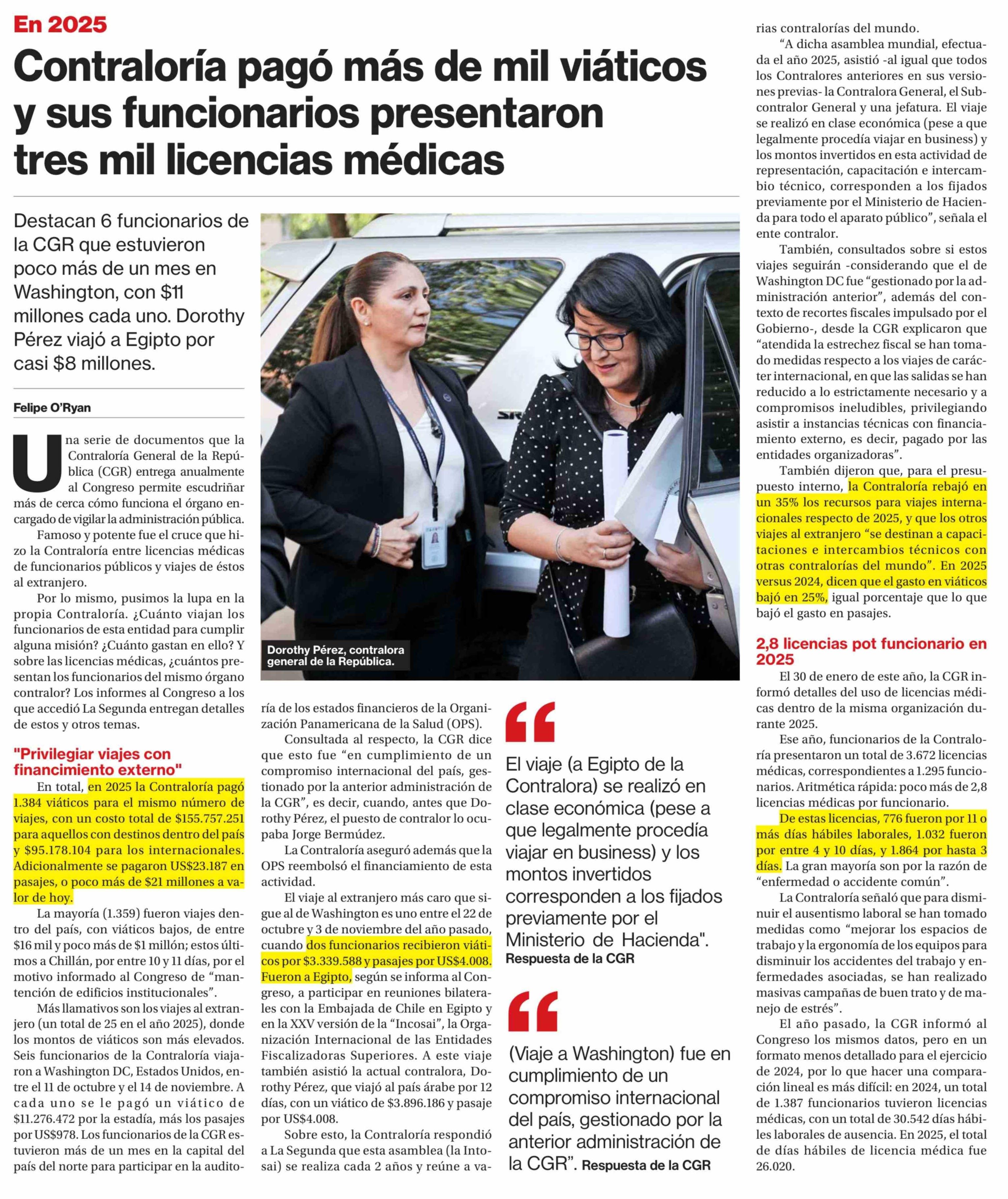 Título: Contraloría pagó más de mil viáticos y sus funcionarios presentaron tres mil licencias médicas