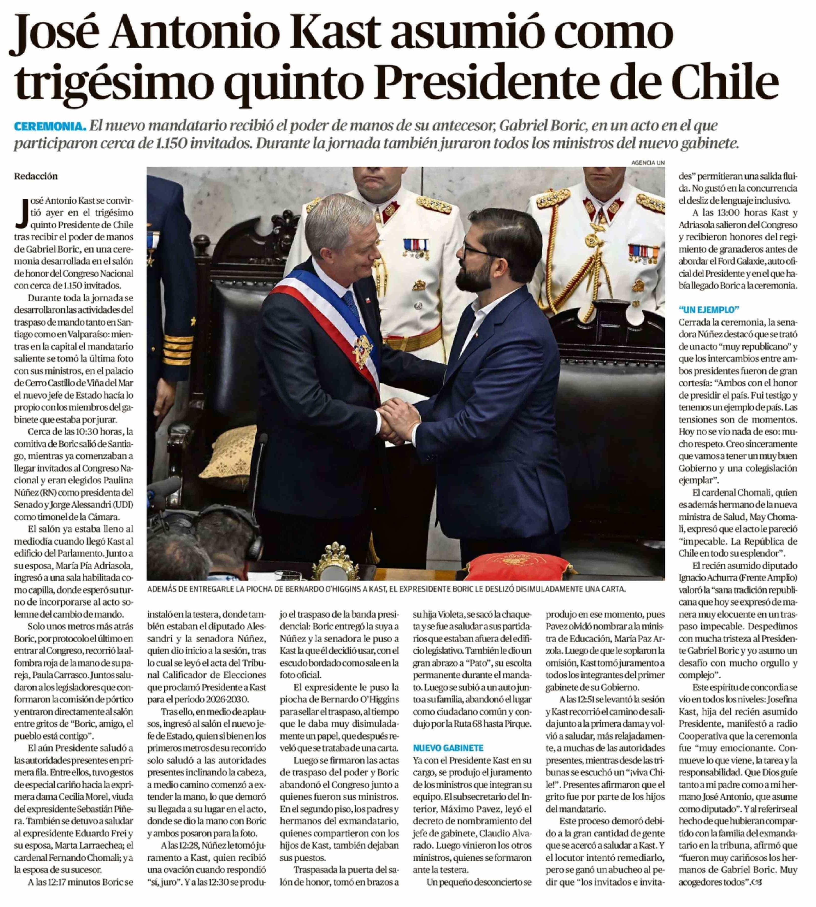 | Título: | José Antonio Kast asumió como trigésimo quinto Presidente de Chile |