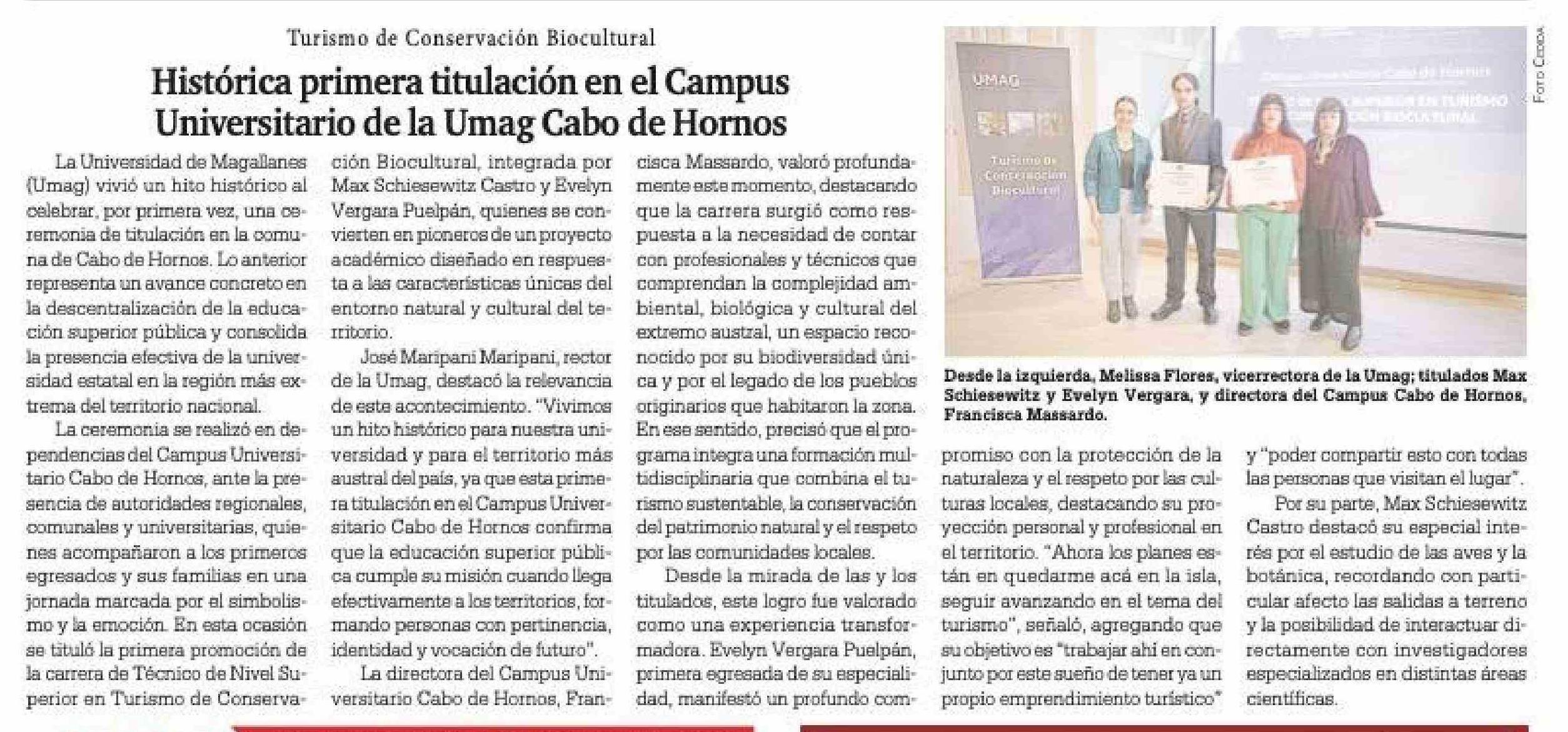 Título: Histórica primera titulación en el Campus Universitario de la Umag Cabo de Hornos