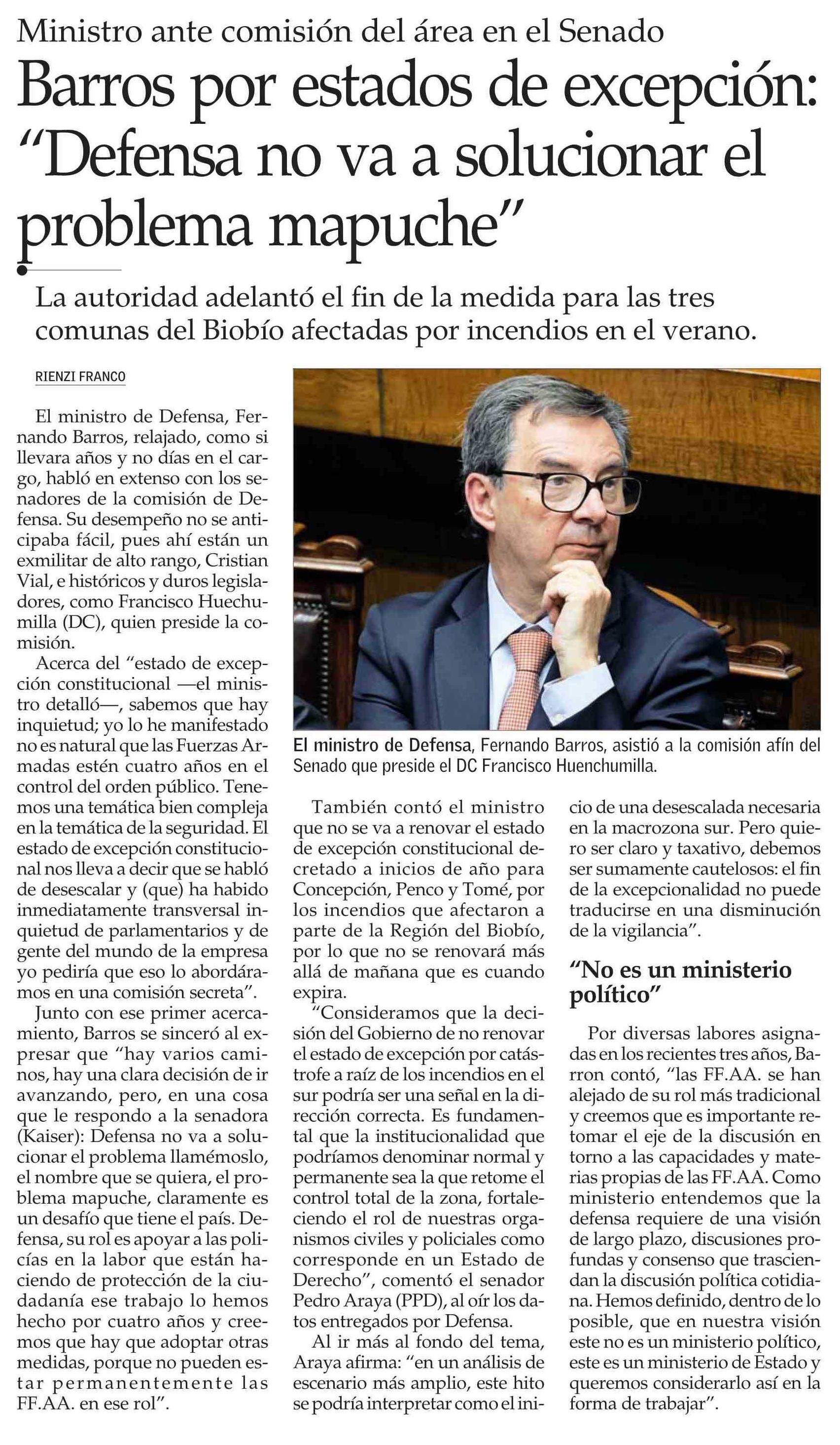 Título: Barros por estados de excepción: “Defensa no va a solucionar el problema mapuche”